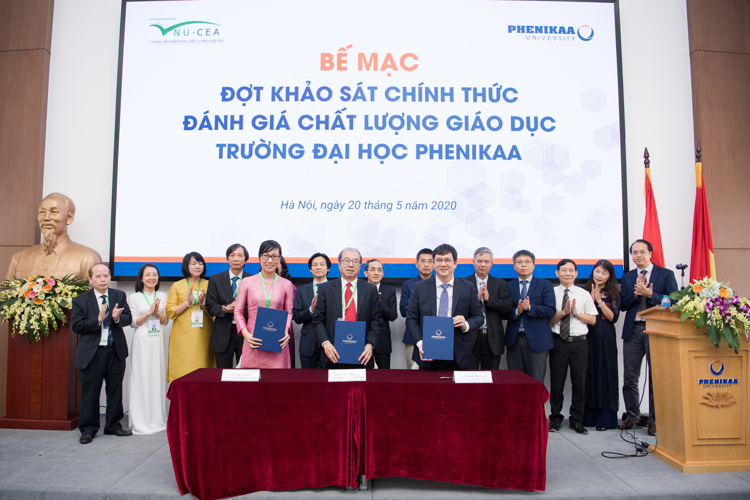 Sáng ngày 20/5/2020, Trung tâm Kiểm định chất lượng giáo dục - Đại học Quốc gia Hà Nội (KĐCLGD - ĐHQGHN) đã phối hợp với Trường Đại học Phenikaa tổ chức bế mạc đợt khảo sát chính thức đánh giá chất lượng giáo dục Trường Đại học Phenikaa.