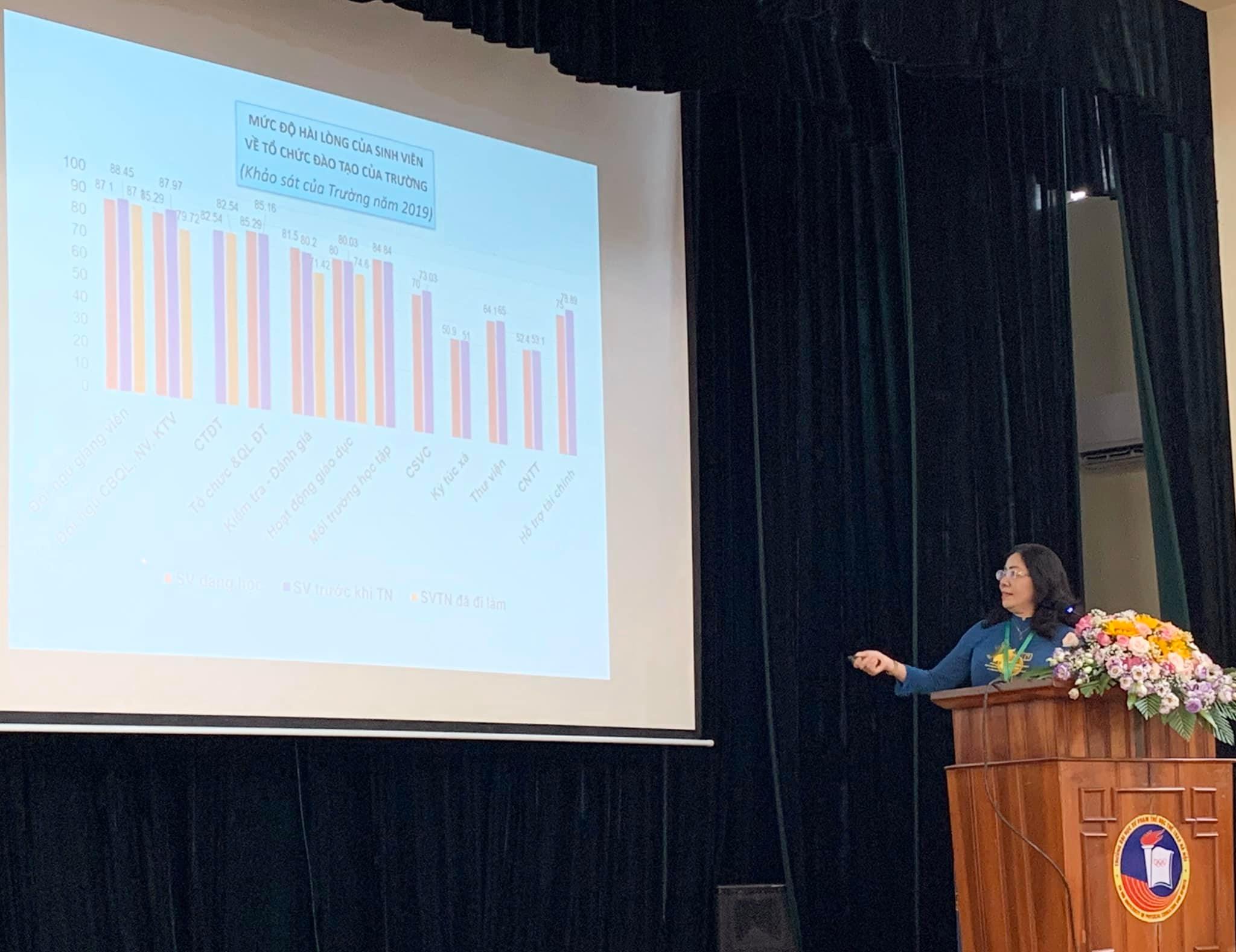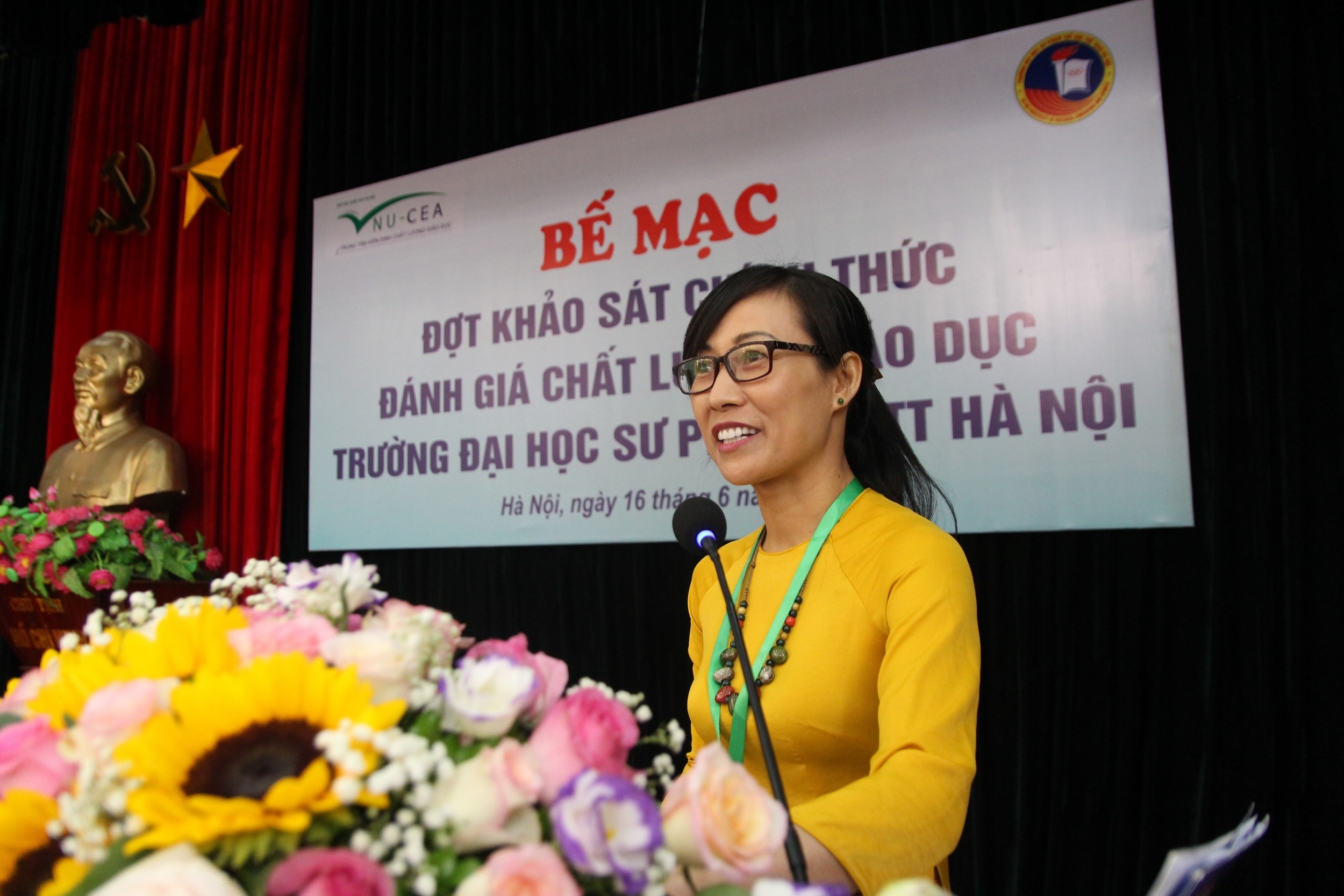 Trong bài phát biểu của mình, TS. Tạ Thị Thu Hiền, Phó Giám đốc phụ trách Trung tâm ghi nhận và đánh giá cao các quy trình, phương pháp đánh giá khoa học, tinh thần làm việc trách nhiệm, khách quan, công tâm, trí tuệ của Đoàn Chuyên gia đánh giá ngoài trong quá trình nghiên cứu hồ sơ minh chứng, khảo sát sơ bộ và khảo sát chính thức để đưa ra những nhận định, đánh giá và khuyến nghị cải tiến chất lượng đối với Nhà trường, đồng thời cảm ơn Trường Đại học Sư phạm Thể dục Thể thao Hà Nội đã hỗ trợ và phối hợp cung cấp thông tin, minh chứng phục vụ cho quá trình đánh giá của Đoàn.
