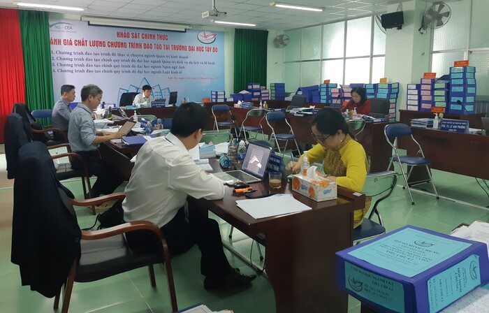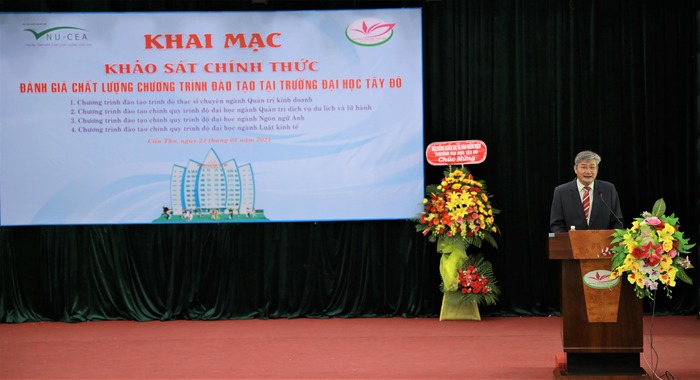 Sáng ngày 23/01/2021, Trung tâm Kiểm định chất lượng giáo dục - Đại học Quốc gia Hà Nội (KĐCLGD - ĐHQGHN) đã phối hợp với Trường Đại học Tây Đô tổ chức khai mạc đợt khảo sát chính thức đánh giá chất lượng bốn chương trình đào tạo (CTĐT) của Nhà trường (CTĐT thạc sĩ Quản trị kinh doanh, các CTĐT chính quy trình độ đại học ngành Quản trị dịch vụ du lịch và lữ hành, ngành Ngôn ngữ Anh và ngành Luật kinh tế).