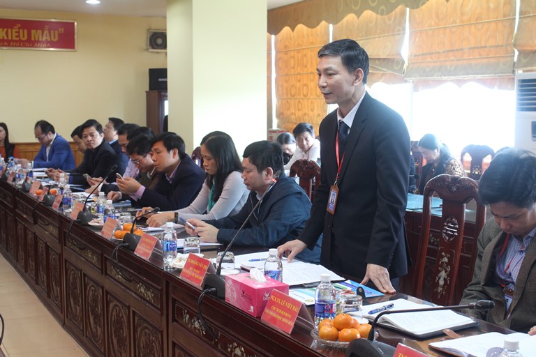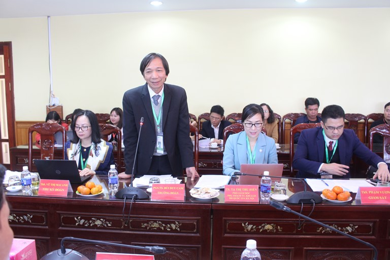 TS. Hoàng Văn Thi - Hiệu trưởng Nhà Trường - Chủ tịch Hội đồng Tự đánh giá Đại diện Lãnh đạo Trường Đại học Hồng Đức bày tỏ cam kết của nhà trường chuẩn bị tốt nhất hồ sơ, minh chứng và các điều kiện cho đợt khảo sát chính thức của Đoàn tại Trường, TS. Hoàng Nam - Phó Hiệu trưởng Nhà trường, Phó Chủ tịch Hội đồng tự đánh giá đã trình bày quá trình tự đánh giá các chương trình đào tạo của nhà trường.