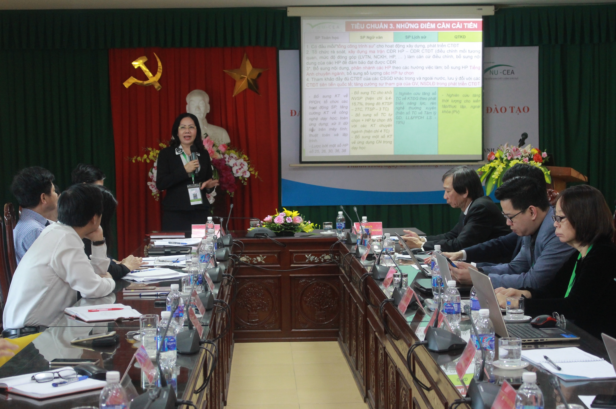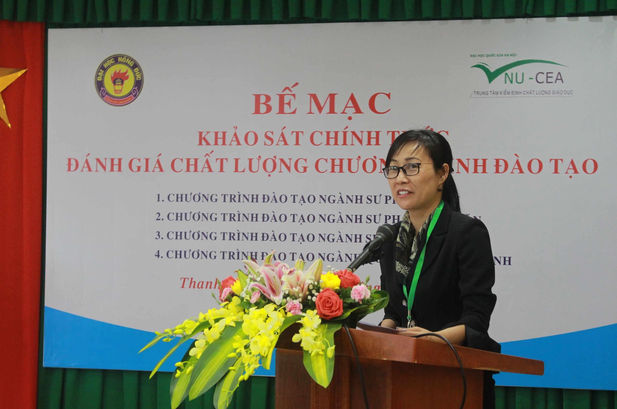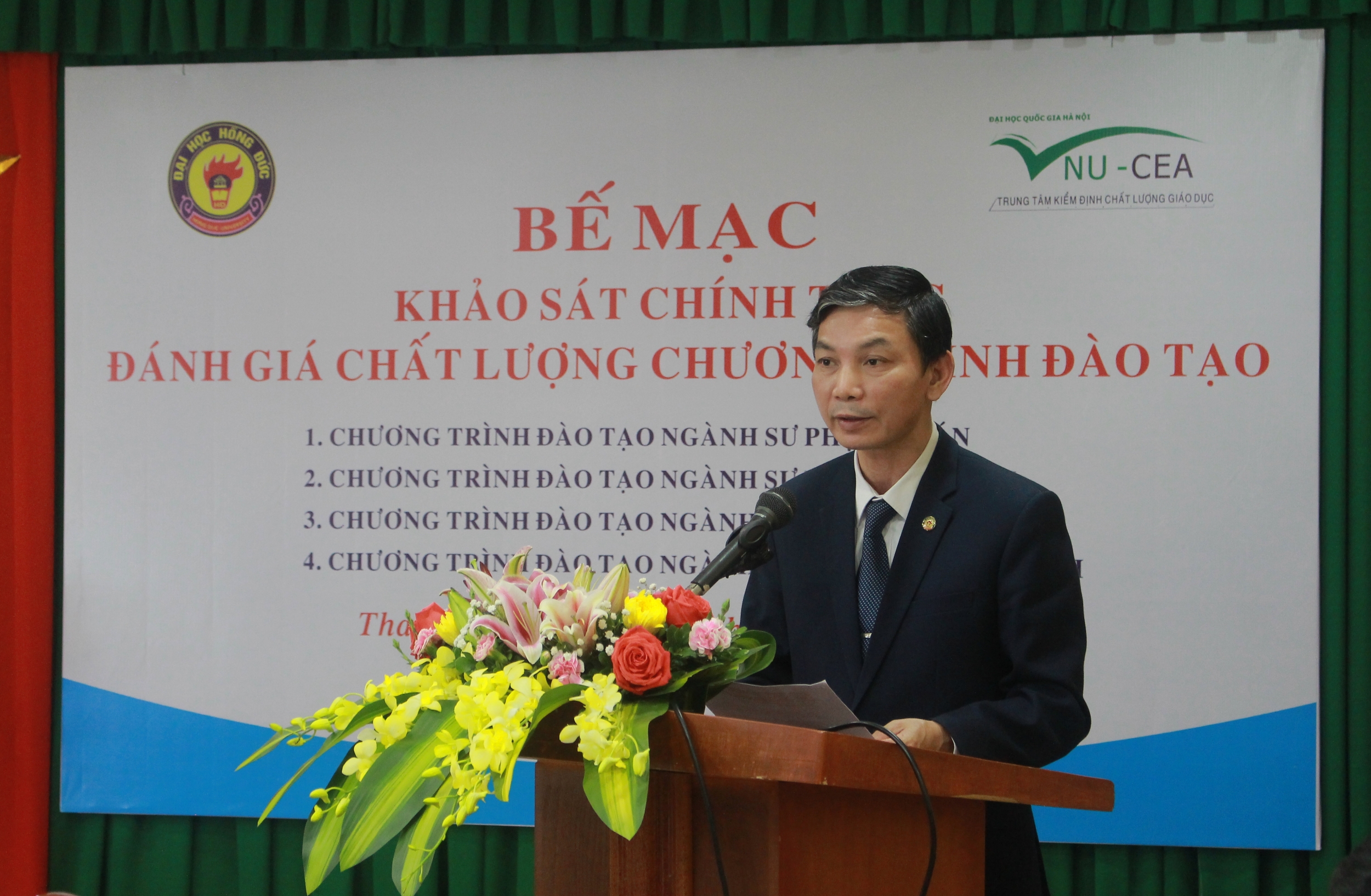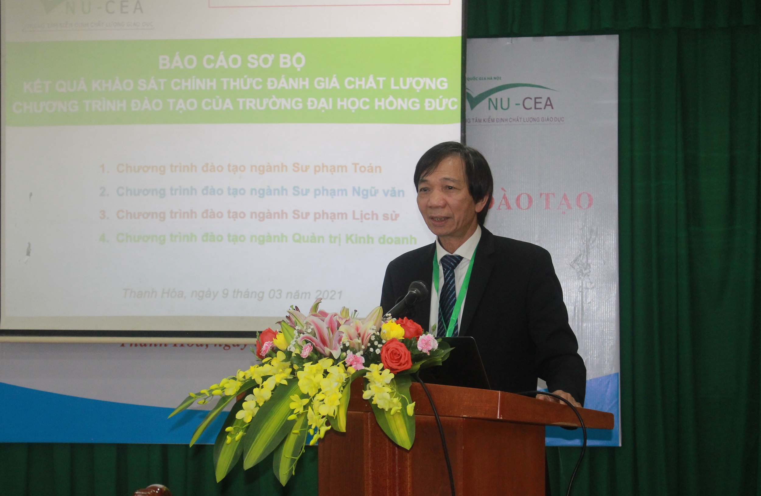 Chiều ngày 09/3/2021, tại Trường Đại học Hồng Đức, Trung tâm Kiểm định chất lượng giáo dục - Đại học Quốc gia Hà Nội (Trung tâm) đã phối hợp với Nhà trường tổ chức bế mạc đợt khảo sát chính thức đánh giá chất lượng 04 chương trình đào tạo chính quy trình độ đại học các: ngành: Sư phạm Toán học, Sư phạm Ngữ văn, Sư phạm Lịch sử và Quản trị kinh doanh.