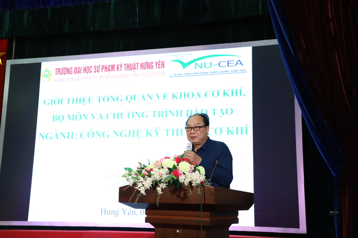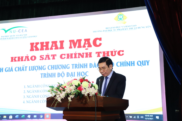 Phát biểu chào mừng đoàn chuyên gia đánh giá ngoài, ông Nguyễn Đức Giang – Phó Hiệu trưởng đã giới thiệu sơ lược về lịch sử Trường Đại học SPKT Hưng Yên, về quá trình thực hiện kế hoạch tự đánh giá, đánh giá ngoài chương trình đào tạo của Nhà trường. Phó Hiệu trưởng Nguyễn Đức Giang cho rằng kết quả của đợt khảo sát không những là cơ sở để nhà trường thực hiện đúng quy định về kiểm định chất lượng giáo dục của Bộ Giáo dục và Đào tạo, mà còn giúp Trường thực hiện nhiều mục tiêu cao hơn, từng bước nâng cao chất lượng giáo dục để hòa nhập vào hệ thống giáo dục đại học của khu vực và thế giới.