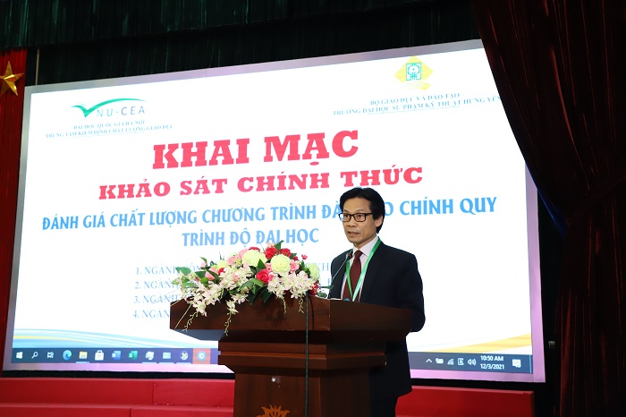 Ngày 12/3/2021, Trung tâm Kiểm định chất lượng giáo dục - Đại học Quốc gia Hà Nội đã phối hợp với Trường Đại học Sư phạm Kỹ thuật Hưng Yên tổ chức đợt khảo sát chính thức đánh giá chất lượng 04 CTĐT chính quy trình độ đại học theo bộ tiêu chuẩn đánh giá chất lượng CTĐT đại học được ban hành theo Thông tư số 04/2016/TT-BGDĐT ngày 14/03/2016 của Bộ trưởng Bộ Giáo dục và Đào tạo.