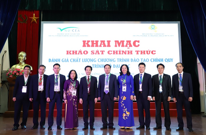 Tham dự đợt khảo sát chính thức có TS. Đinh Văn Toàn - Phó Giám đốc Trung tâm KĐCLGD-ĐHQGHN; về phía Đoàn Chuyên gia đánh giá ngoài có: GS.TS. Nguyễn Hữu Đức, Trưởng đoàn và các thành viên, cán bộ giám sát: TS. Hoàng Thị Xuân Hoa, TS. Trần Hữu Lượng, PGS.TS. Nguyễn Tiến Dũng, TS. Nguyễn Thị Thu Hương, PGS.TS. Bùi Đức Nguyên, PGS.TS. Nguyễn Văn Long, PGS.TS. Nguyễn Thanh Hà, PGS.TS. Lê Trung Thành, ThS. Nguyễn Hòa Huy.