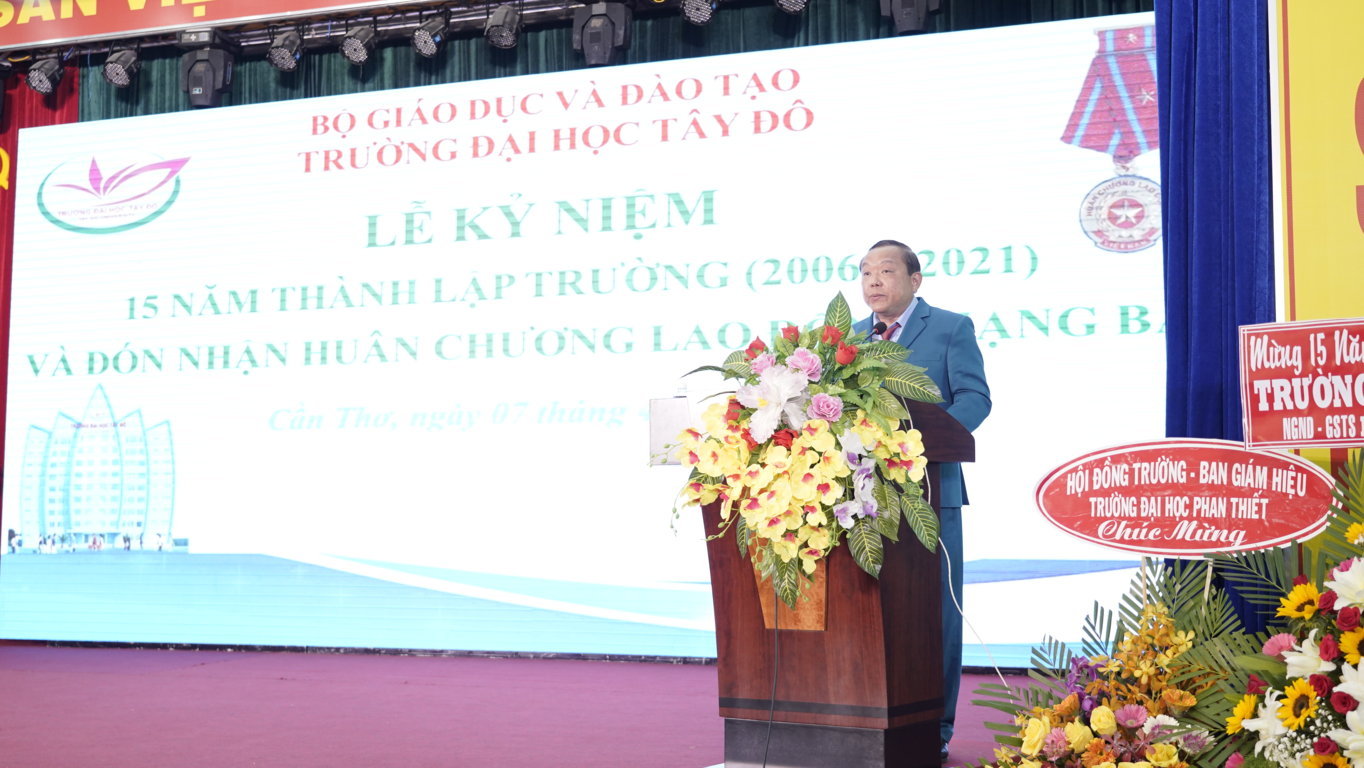 Tham dự buổi lễ có PGS. TS. Nguyễn Thu Thủy - Vụ Trưởng Vụ Giáo dục Đại học - Bộ Giáo dục và Đào tạo; PGS.TS Lê Văn Học - Nguyên Phó Chủ nhiệm Ủy ban Văn hóa, Giáo dục, Thanh Thiếu niên và Nhi đồng của Quốc hội; Ông Lê Nam Giới – Nguyên Ủy viên Ban Chấp hành Trung ương Đảng, Nguyên Bí thư thành ủy TP. Cần Thơ và các đồng chí lãnh đạo, nguyên lãnh đạo TP. Cần Thơ, các ban ngành. Về phía Trung tâm KĐCLGD-ĐHQGHN có TS. Tạ Thị Thu Hiền, Phó Giám đốc Phụ trách; GS.TSKH. Bành Tiến Long, Trưởng Đoàn chuyên gia Đánh giá ngoài. Về phía Trường Đại học Tây Đô có: Ông Lư Văn Điền - Nguyên UV BCH TW Đảng, Nguyên Bí thư tỉnh ủy Cần Thơ, Chủ tịch Hội đồng Sáng lập Trường và các thành viên hội đồng quản trị nhà trường; TTƯT.PGS.TS. Trần Công Luận - Hiệu trưởng, các thành viên Ban Giám hiệu cùng toàn thể lãnh đạo các Phòng, Khoa, Bộ môn, Trung tâm, cán bộ, giảng viên và đại diện sinh viên của Nhà trường.