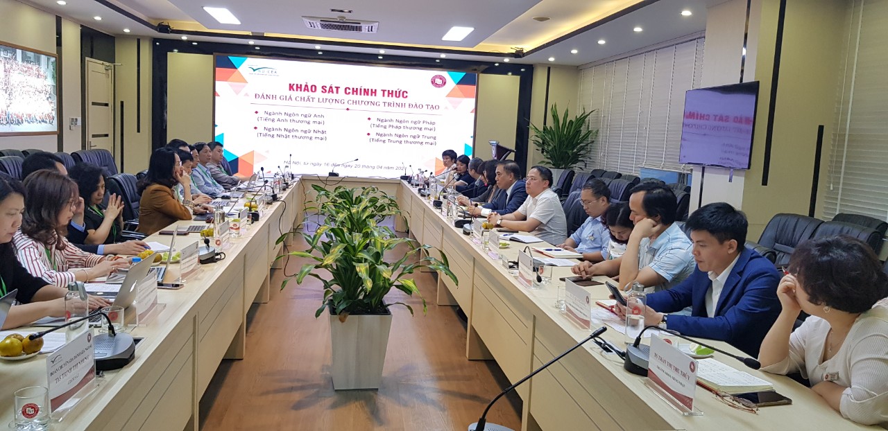 Ngày 16/4/2021, Trung tâm Kiểm định chất lượng giáo dục - Đại học Quốc gia Hà Nội (KĐCLGD - ĐHQGHN) đã phối hợp với Trường Đại học Ngoại thương tổ chức đợt khảo sát chính thức đánh giá chất lượng 04 chương trình đào tạo chính quy trình độ đại học (CTĐT) gồm: ngành Ngôn ngữ Anh (Tiếng Anh thương mại), Ngôn ngữ Pháp (Tiếng Pháp thương mại), Ngôn ngữ Nhật (Tiếng Nhật thương mại) và Ngôn ngữ Trung (Tiếng Trung thương mại) theo bộ tiêu chuẩn đánh giá chất lượng chương trình đào tạo đại học được ban hành theo Thông tư số 04/2016/TT-BGDĐT ngày 14/03/2016 của Bộ trưởng Bộ Giáo dục và Đào tạo.