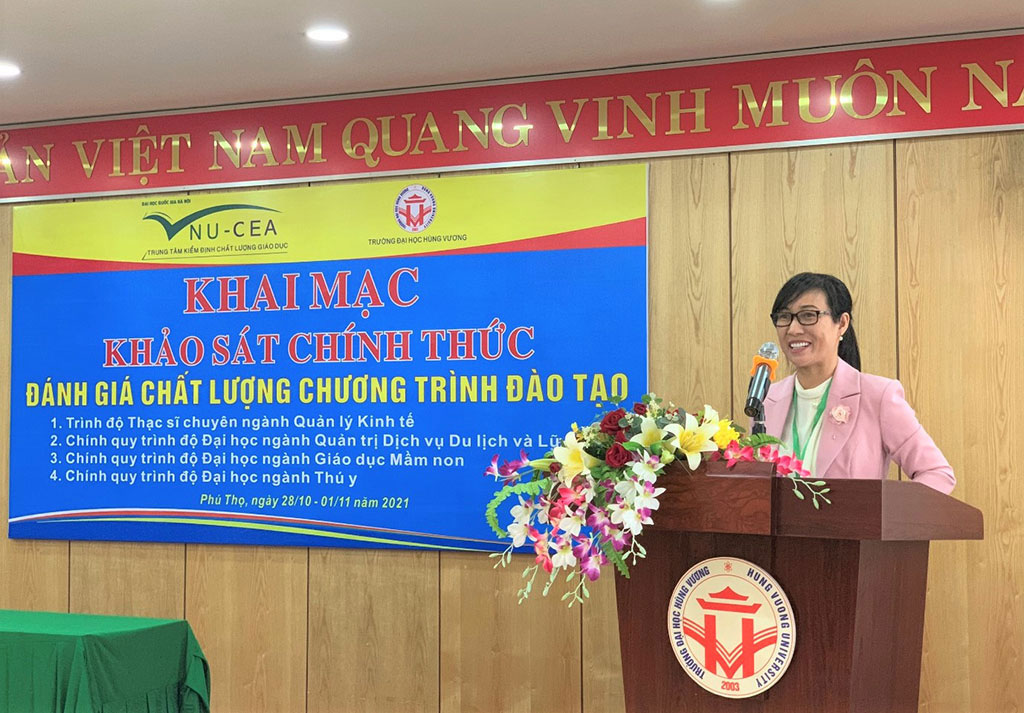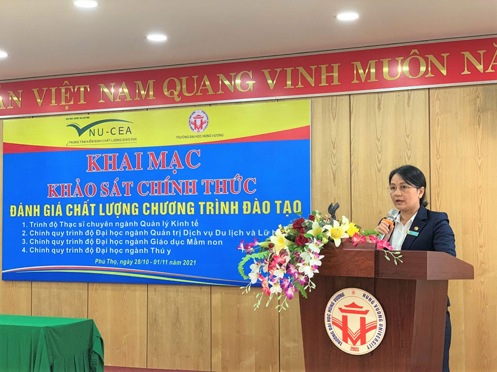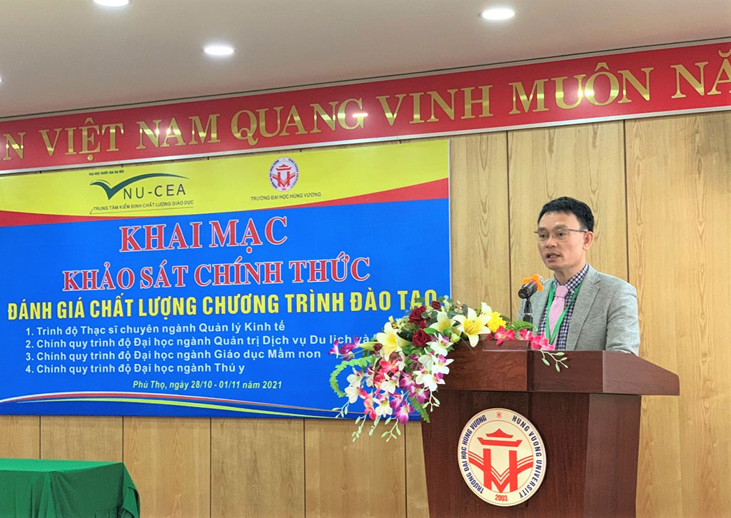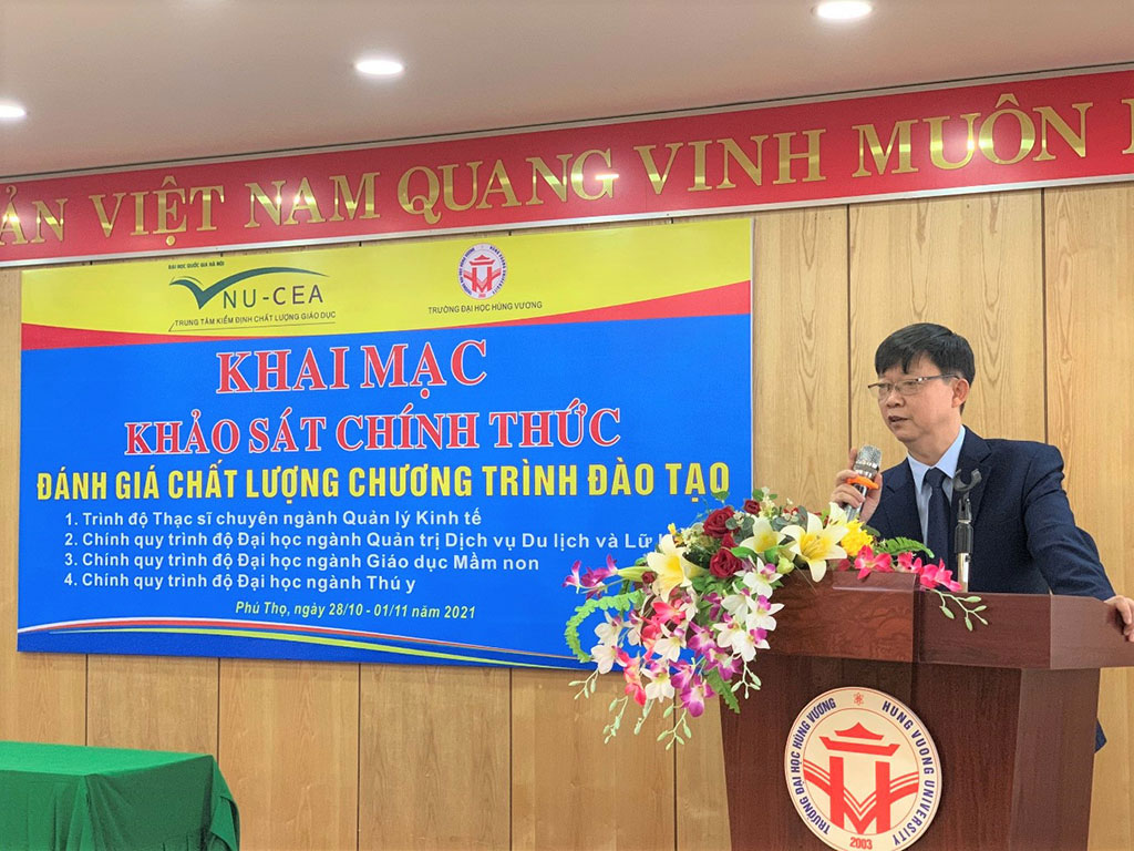 Ngày ngày 28/10/2021, Trung tâm Kiểm định chất lượng giáo dục - Đại học Quốc gia Hà Nội (KĐCLGD - ĐHQGHN) đã phối hợp với Trường Đại học Hùng Vương tổ chức khai mạc đợt khảo sát chính thức 04 chương trình đào tạo gồm: CTĐT thạc sĩ chuyên ngành Quản lý kinh tế; các CTĐT chính quy trình độ đại học ngành Giáo dục Mầm non; ngành Thú y; ngành Quản trị Dịch vụ Du lịch & Lữ hành.