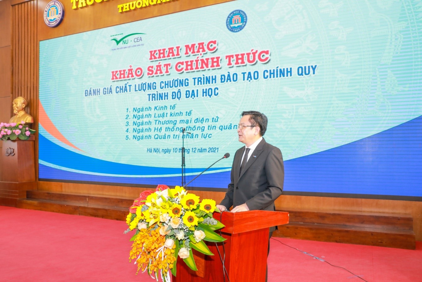 Sáng ngày 10/12/2021, Trung tâm kiểm định chất lượng giáo dục - Đại học Quốc gia Hà Nội (KĐCLGD - ĐHQGHN) phối hợp với Trường Đại học Thương mại tổ chức đợt khảo sát chính thức đánh giá ngoài 05 chương trình đào tạo chính quy trình độ đại học (CTĐT) các ngành: Kinh tế, Luật kinh tế, Thương mại điện tử, Hệ thống thông tin quản lý và Quản trị nhân lực.