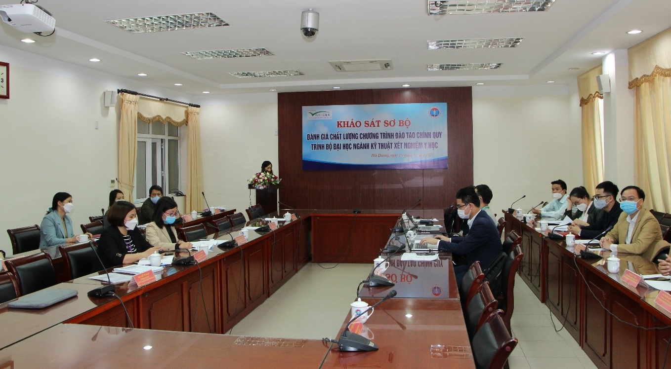 Ngày 15/12/2021, Trung tâm Kiểm định chất lượng giáo dục - Đại học Quốc gia Hà Nội (KĐCLGD-ĐHQGHN) và Đoàn Chuyên gia đánh giá ngoài (ĐGN) đã tổ chức khảo sát sơ bộ đánh giá chất lượng chương trình đào tạo chính quy trình độ đại học (CTĐT) ngành Kỹ thuật xét nghiệm y học của Trường Đại học Kỹ thuật y tế Hải Dương. Phiên làm việc được tổ chức kết hợp trực tuyến, đảm bảo các điều kiện an toàn phòng dịch.