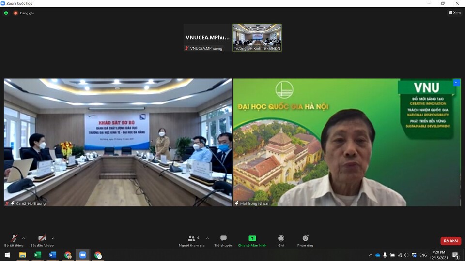 Ngày 15/12/2021, Trung tâm Kiểm định chất lượng giáo dục – Đại học Quốc gia Hà Nội (KĐCLGD -ĐHQGHN) phối hợp với Trường Đại học Kinh tế, Đại học Đà Nẵng tiến hành khảo sát sơ bộ đánh giá chất lượng chu kỳ 2 Nhà trường.