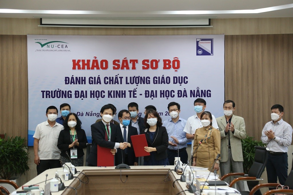 Cuối buổi làm việc, đại diện lãnh đạo Trung tâm KĐCLGD - ĐHQGHN, đại diện Đoàn ĐGN và lãnh đạo Trường Đại học Kinh tế - Đại học Đà Nẵng đã ký Biên bản ghi nhớ sau khảo sát sơ bộ, khẳng định sự chuẩn bị và sẵn sàng của Nhà trường cho đợt khảo sát chính thức sắp tới.