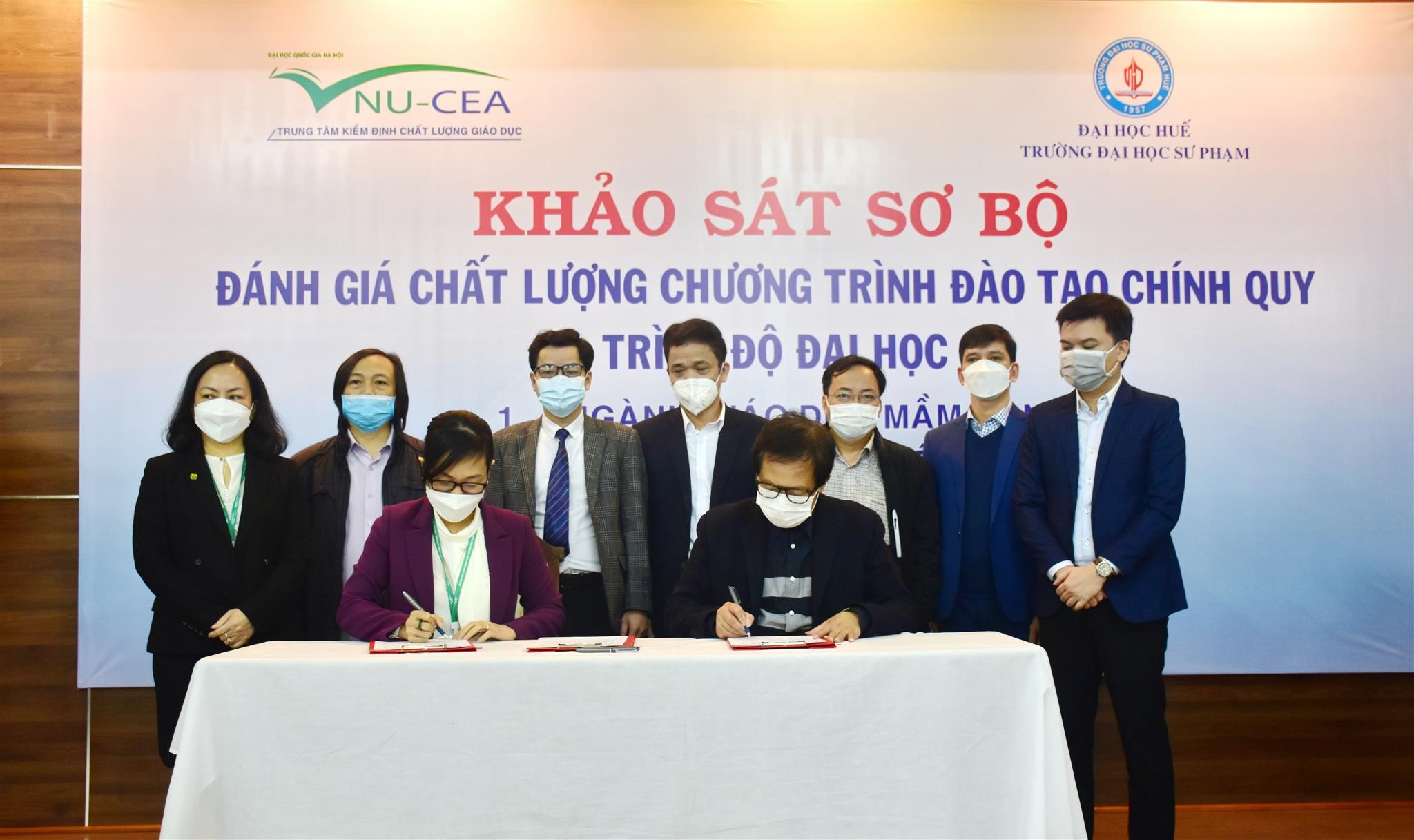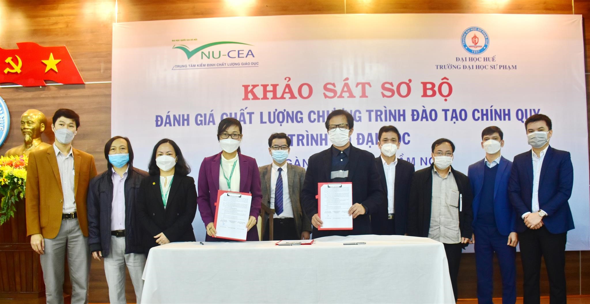 Tham dự đợt khảo sát sơ bộ có TS. Tạ Thị Thu Hiền - Phó Giám đốc phụ trách Trung tâm; GS.TS. Nguyễn Hữu Đức - Trưởng đoàn chuyên gia ĐGN; ThS. Vũ Thị Mai Anh - Thư ký Đoàn và ThS. Trịnh Thị Nhung - Giám sát viên. Về phía Đại học Huế có TS. Trương Quý Tùng, Phó Giám đốc. Về phía Trường Đại học Sư phạm, Đại học Huế có PGS.TS Lê Anh Phương - Bí thư Đảng ủy, Hiệu trưởng Nhà trường, GS.TS. Dương Tuấn Quang – Quyền Chủ tịch Hội đồng Trường cùng các thành viên Ban Giám hiệu Nhà trường, đại diện lãnh đạo các khoa có CTĐT được đánh giá, các thành viên Hội đồng Tự đánh giá và đại diện các đơn vị của Nhà trường.