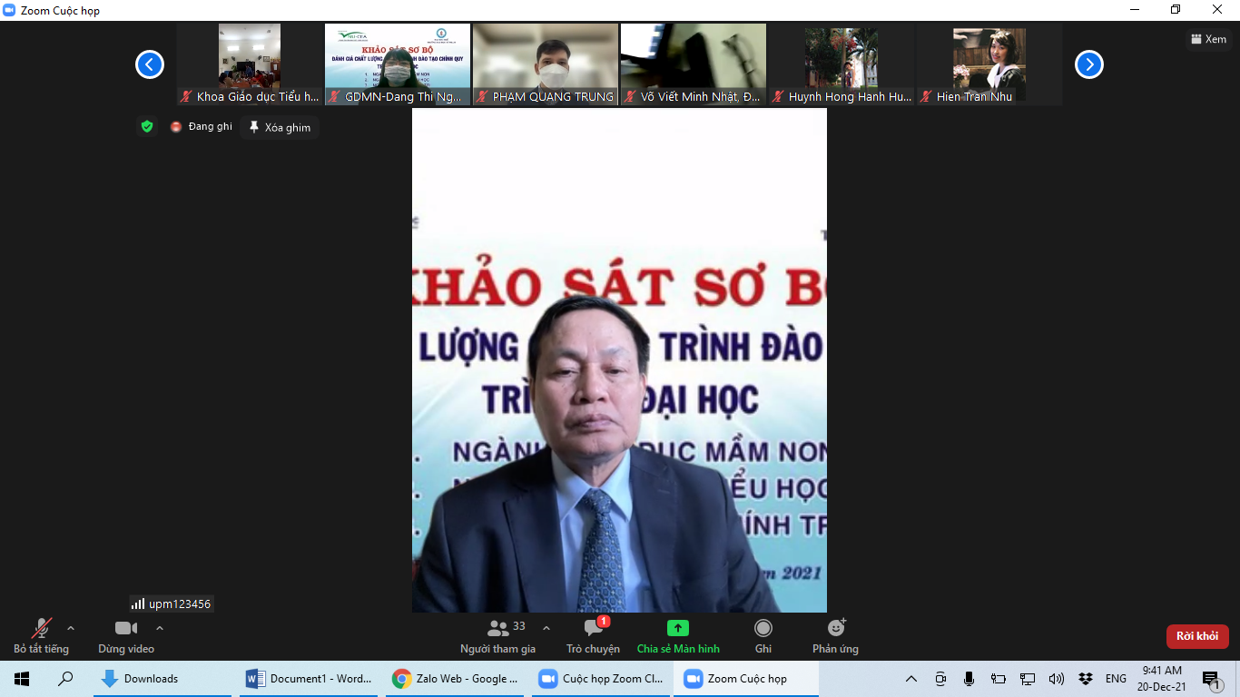 Ngày 20/12/2021, Trung tâm Kiểm định chất lượng giáo dục - Đại học Quốc gia Hà Nội (KĐCLGD-ĐHQGHN) và Đoàn Chuyên gia đánh giá ngoài (ĐGN) đã tổ chức đợt khảo sát sơ bộ đánh giá chất lượng 03 chương trình đào tạo chính quy trình độ đại học
