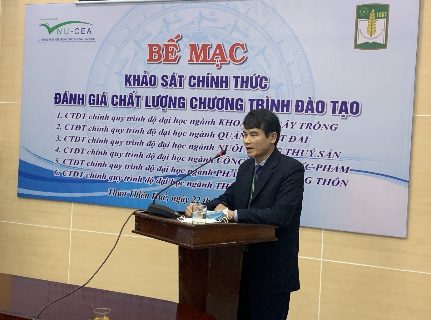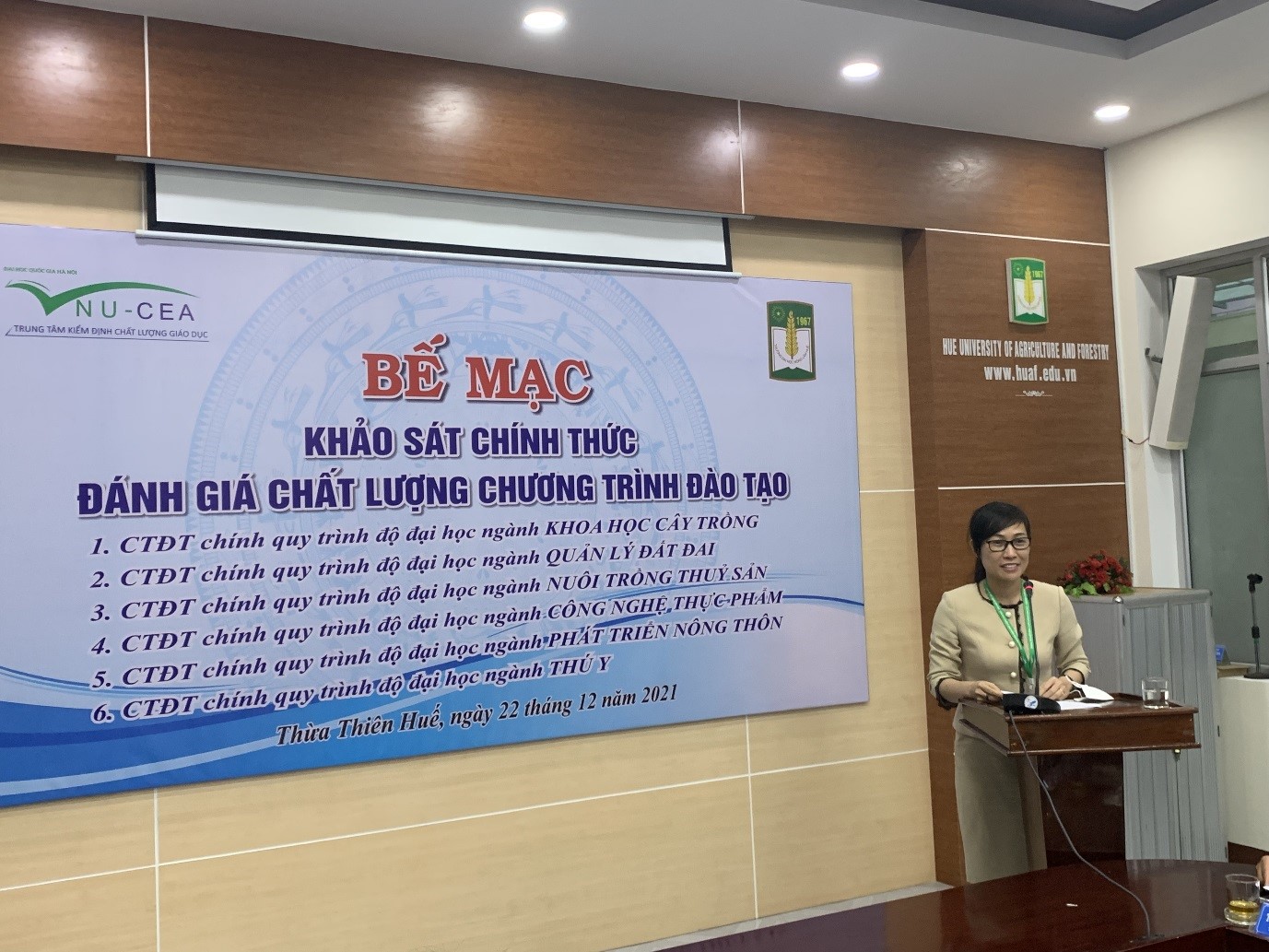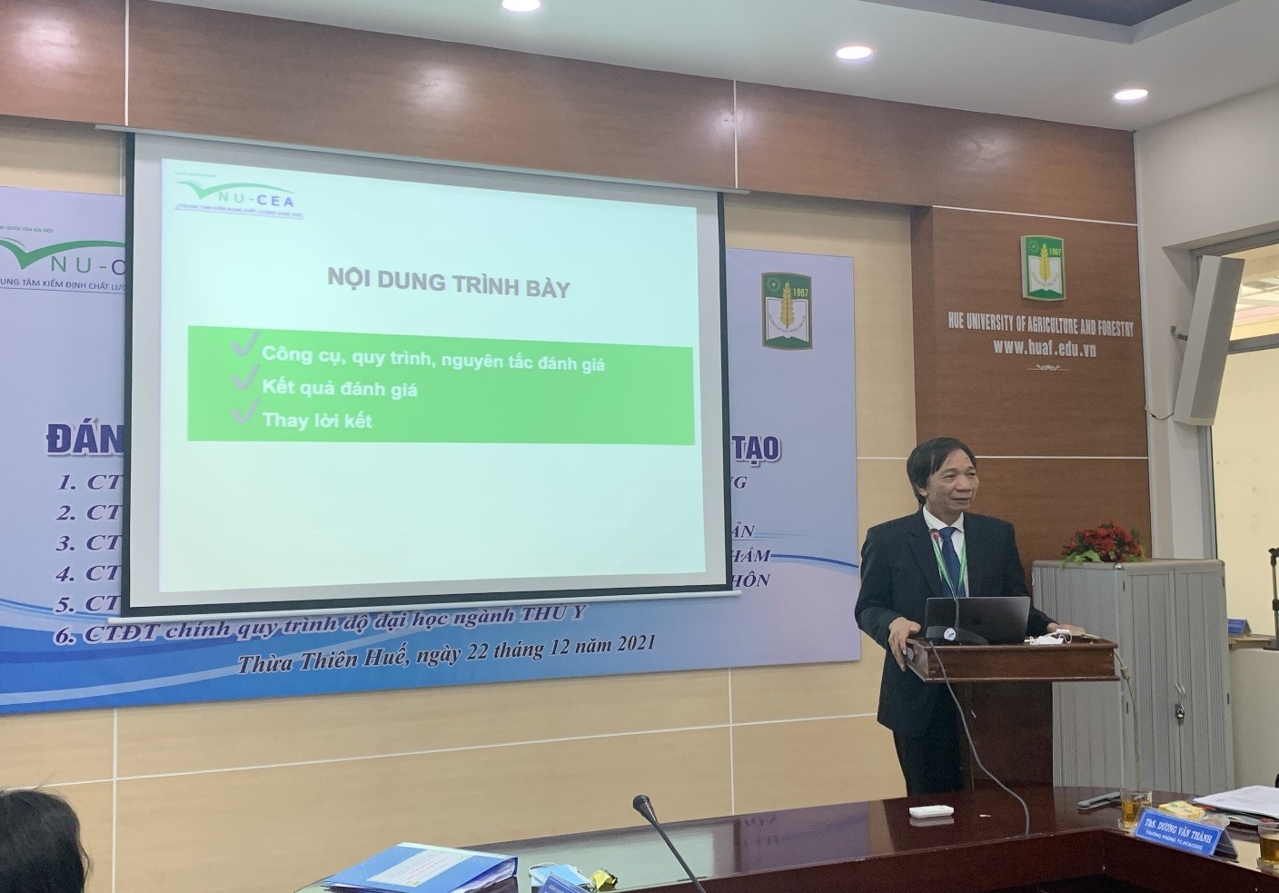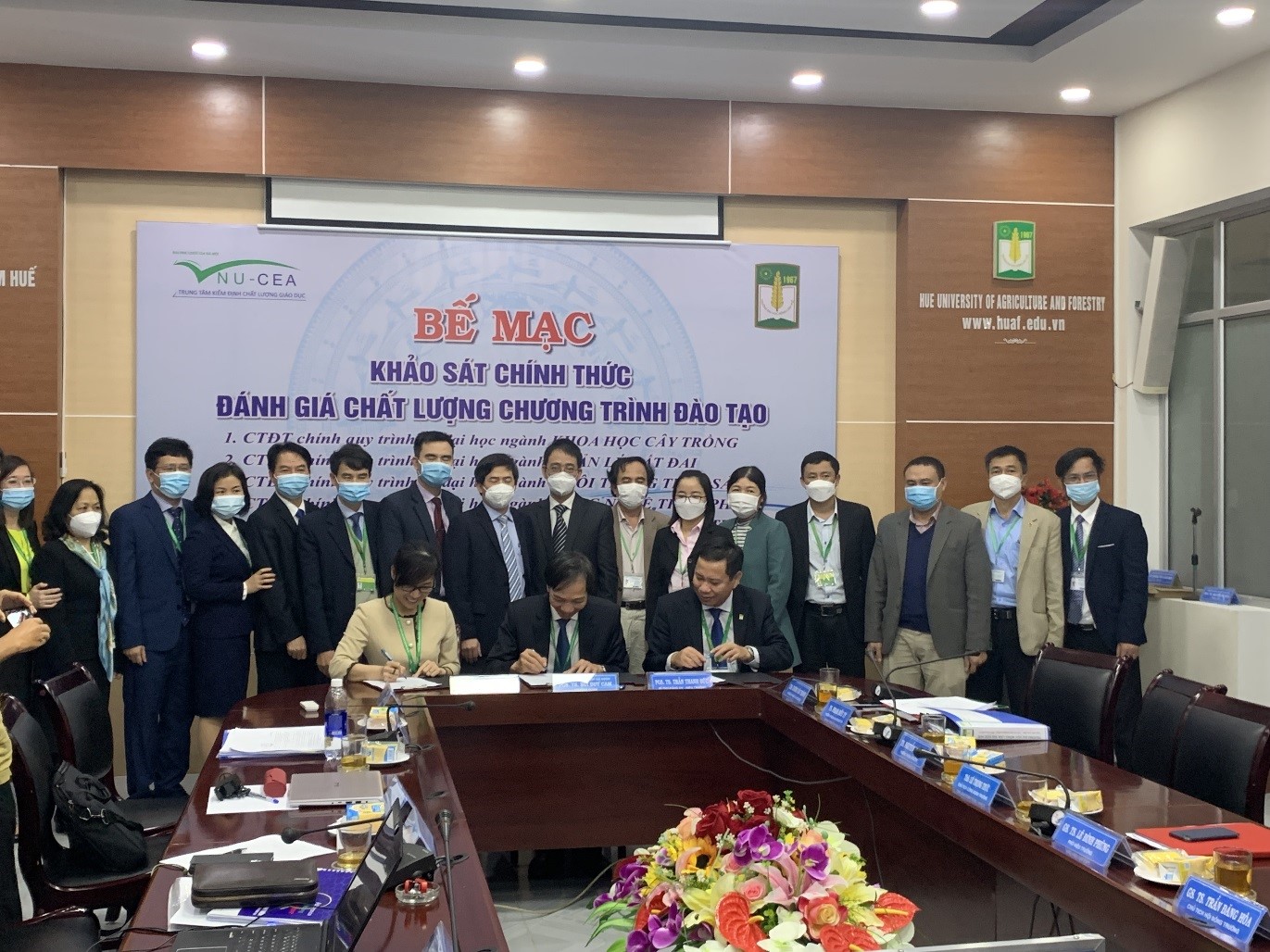 Chiều ngày 22/12/2021, Trung tâm kiểm định chất lượng giáo dục – Đại học Quốc gia Hà Nội (KĐCLGD-ĐHQGHN) phối hợp với trường Đại học Nông Lâm, Đại học Huế (ĐHNL) tổ chức bế mạc đợt khảo sát chính thức đánh giá ngoài (ĐGN)