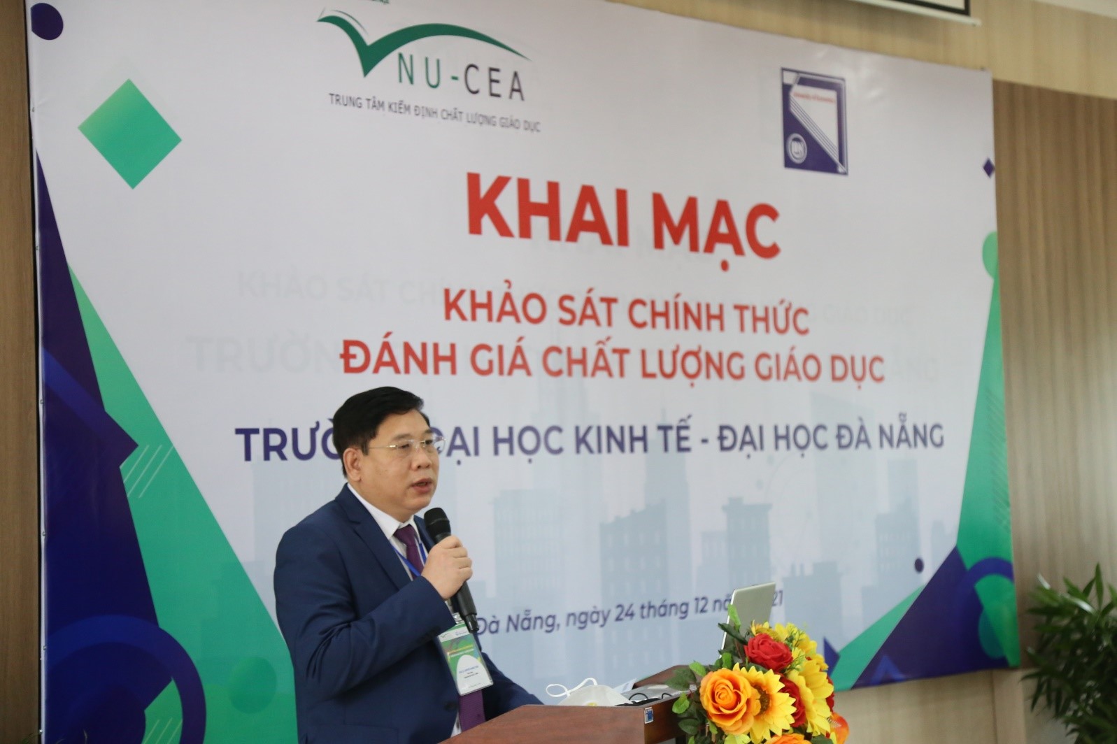 Nguyễn Mạnh Toàn – Hiệu trưởng Trường Đại học Kinh tế - ĐHĐN phát biểuSau phiên khai mạc, Đoàn chuyên gia đánh giá ngoài sẽ triển khai các hoạt động nghiên cứu hồ sơ minh chứng, phỏng vấn các bên liên quan, khảo sát thu thập thông tin phản hồi của các bên liên quan, thăm quan, kiểm tra các cơ sở vật chất của Nhà trường để có thể đưa ra những nhận định, đánh giá mức độ đáp ứng yêu cầu chuẩn chất lượng đối với các hoạt động của Nhà trường. Đợt khảo sát chính thức đánh giá chất lượng giáo dục Trường Đại học Kinh tế - ĐHĐN sẽ diễn ra tại Trường từ ngày 24/12/2021 đến hết ngày 28/12/2021.