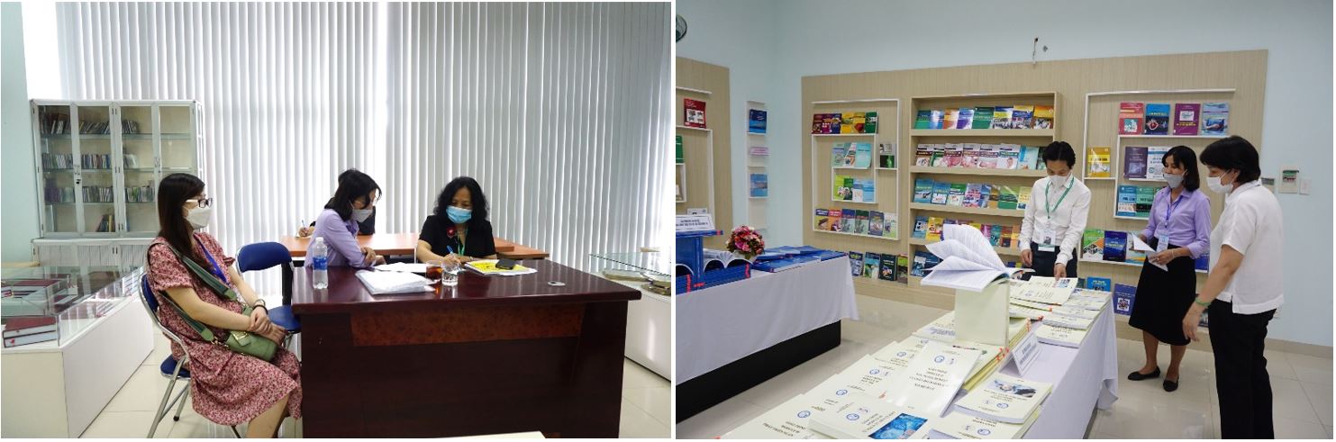 Đoàn nghiên cứu hồ sơ, minh chứng và làm việc với đầu mối các đơn vị của