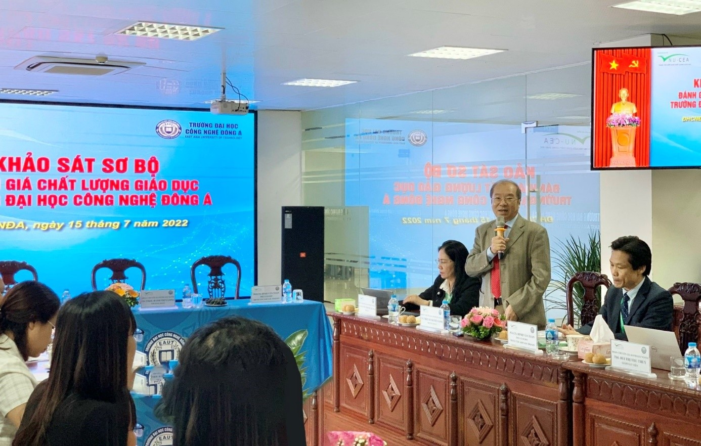 phía Trường Đại học Công nghệ Đông Á có GS.TS. Đinh Văn Thuận – Chủ tịch Hội đồng