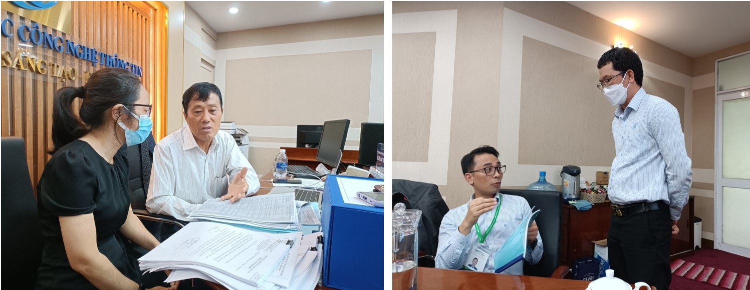 Đoàn nghiên cứu hồ sơ, minh chứng và làm việc với đầu mối các đơn vị