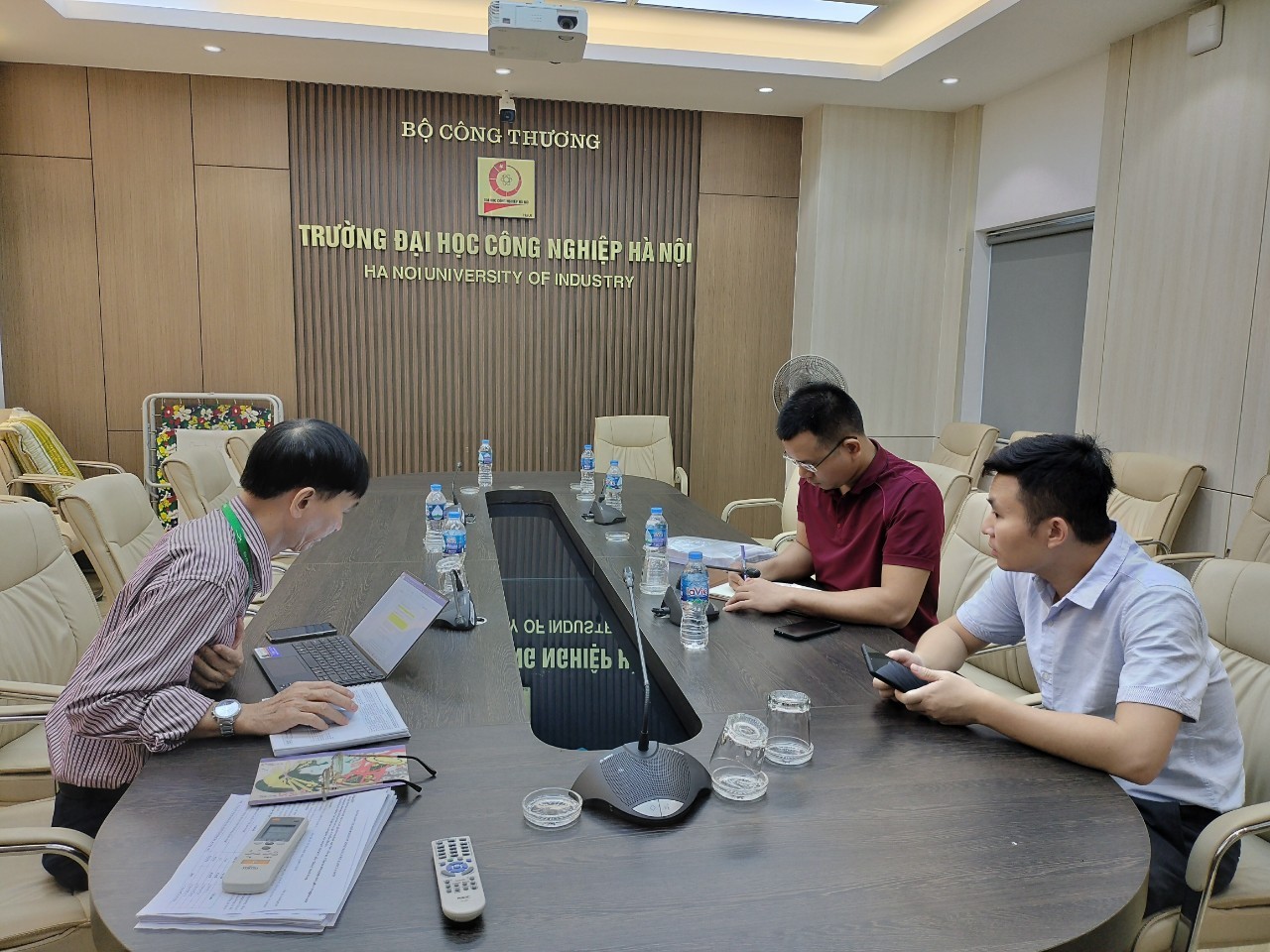 phía Trường ĐH CNHN có PGS.TS. Lê Hồng Quân - Chủ tịch Hội đồng Trường,