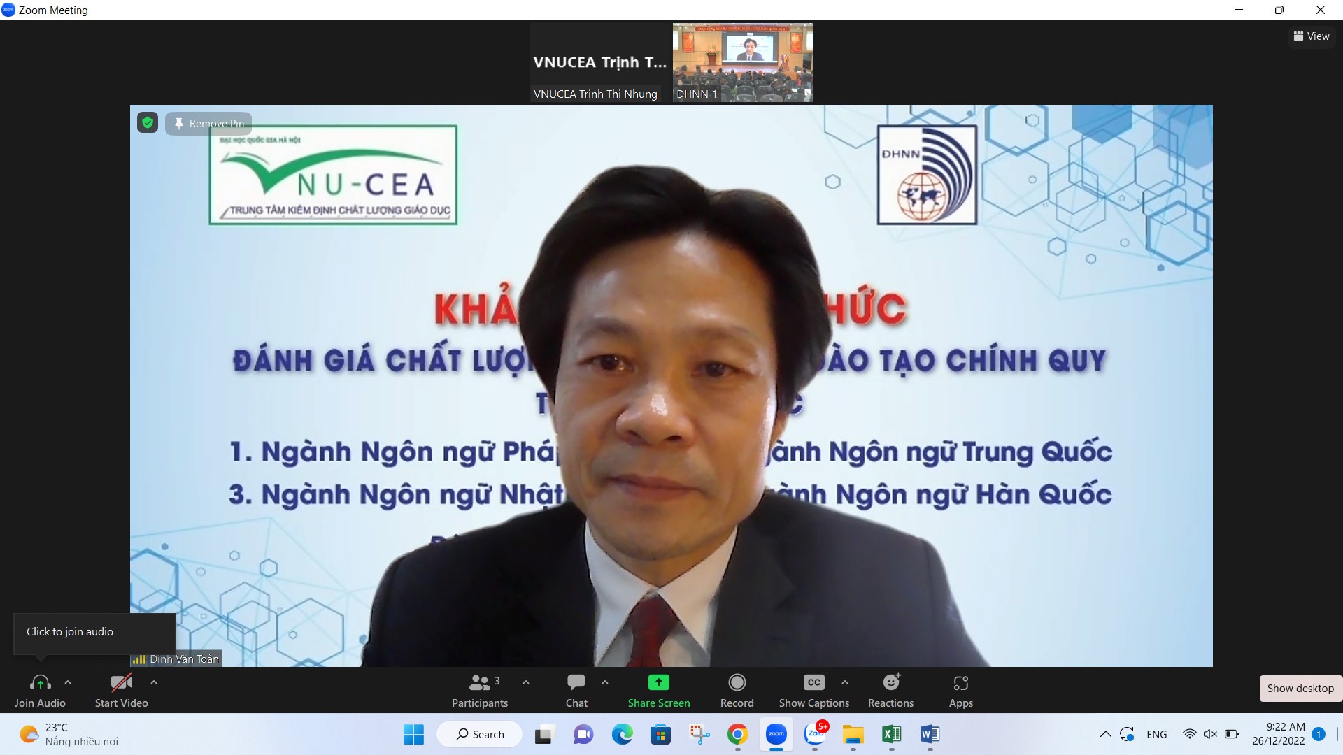 26/12/2022, Trung tâm Kiểm định chất lượng giáo dục Đại học Quốc gia Hà Nội