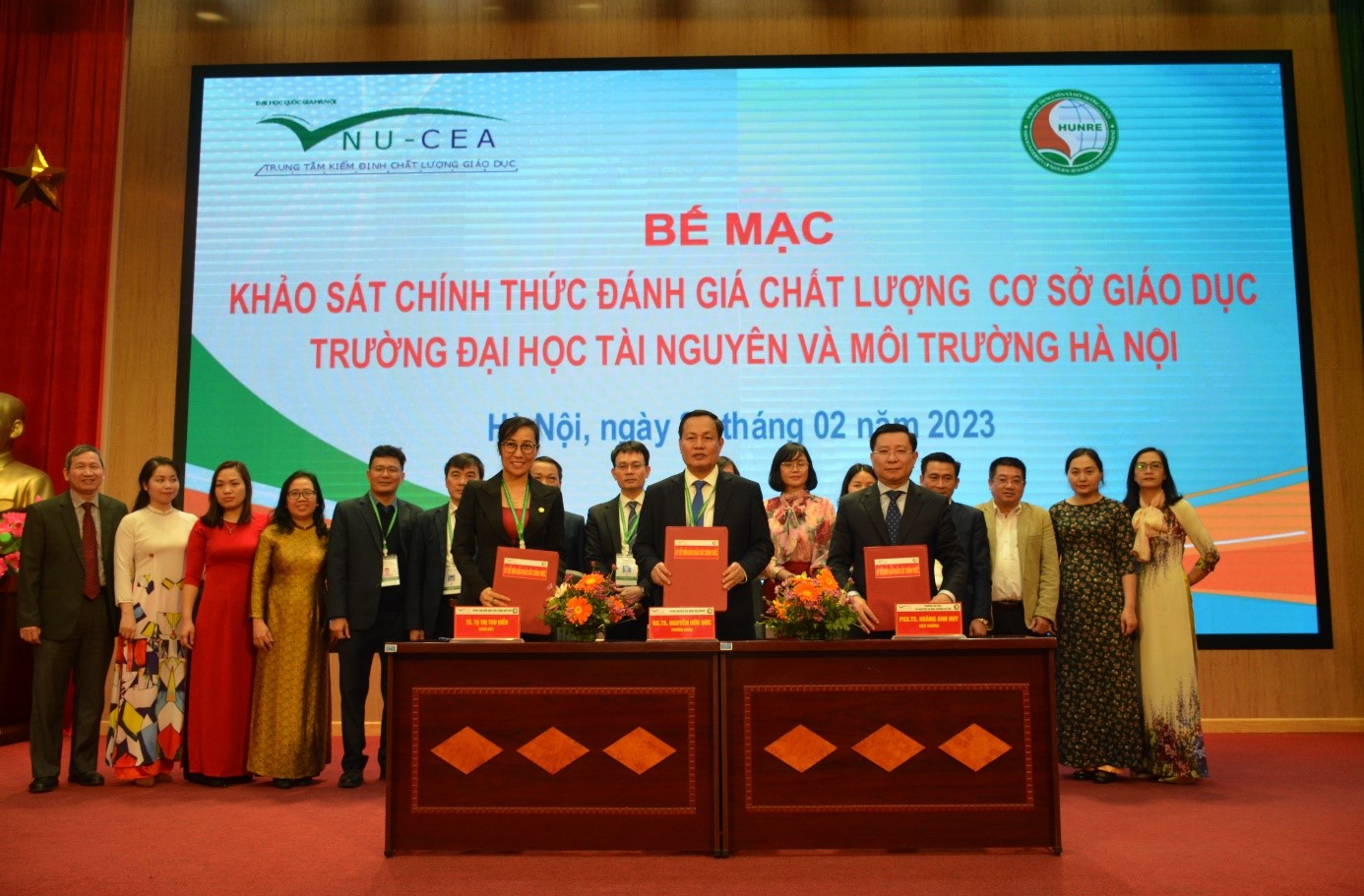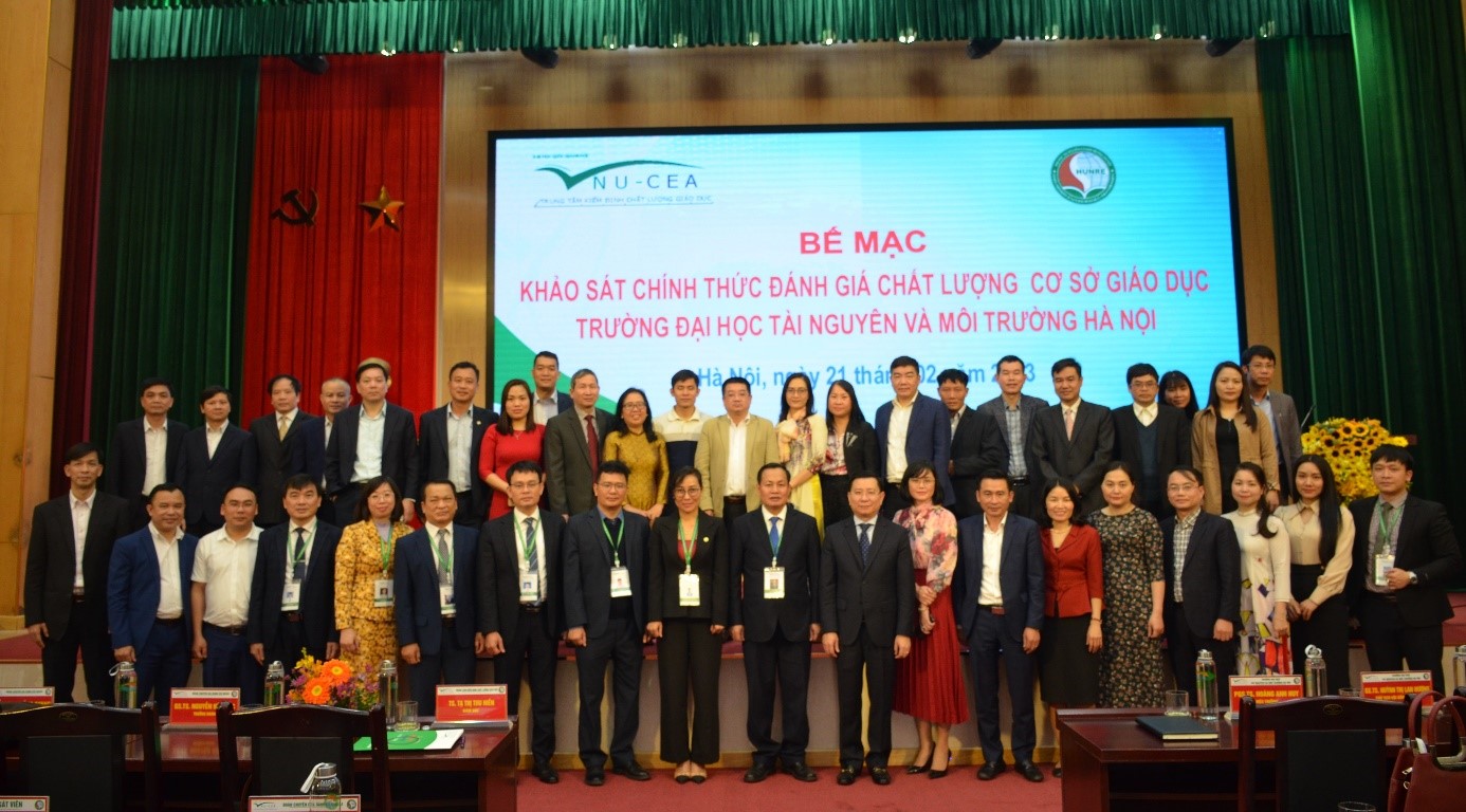 Ngày 21/02/2023, Trung tâm Kiểm định chất lượng giáo dục - Đại học Quốc gia Hà Nội (KĐCLGD-ĐHQGHN) đã phối hợp với Trường Đại học Tài nguyên và Môi trường Hà Nội tổ chức bế mạc đợt khảo sát chính thức đánh giá chất lượng giáo dục chu kỳ 2 đối với Nhà trường.