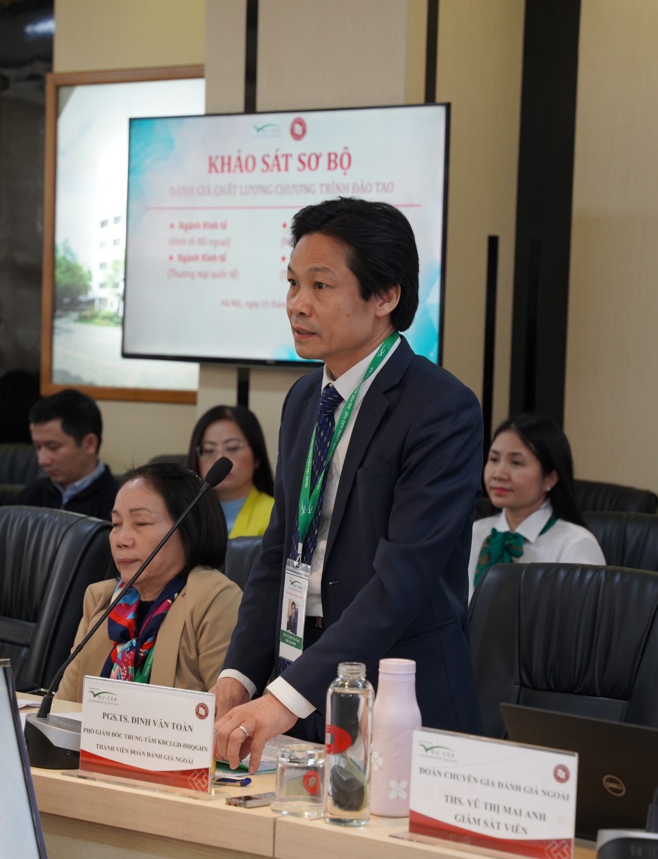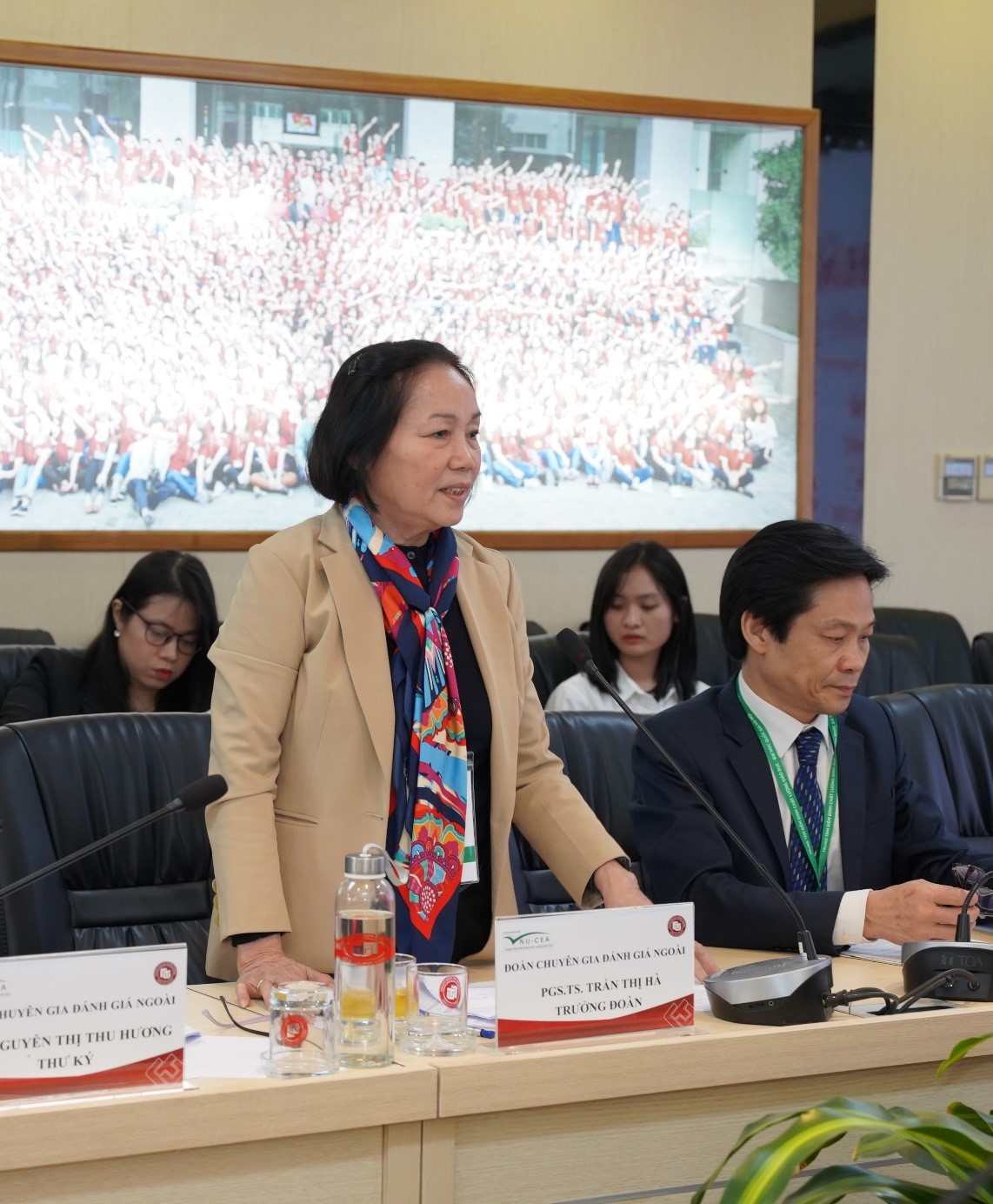 Nguyễn Thị Thu Hương - Thư ký Đoàn chuyên gia ĐGN và ThS. Vũ Thị Mai Anh - Giám sát viên; về phía Trường Đại học Ngoại