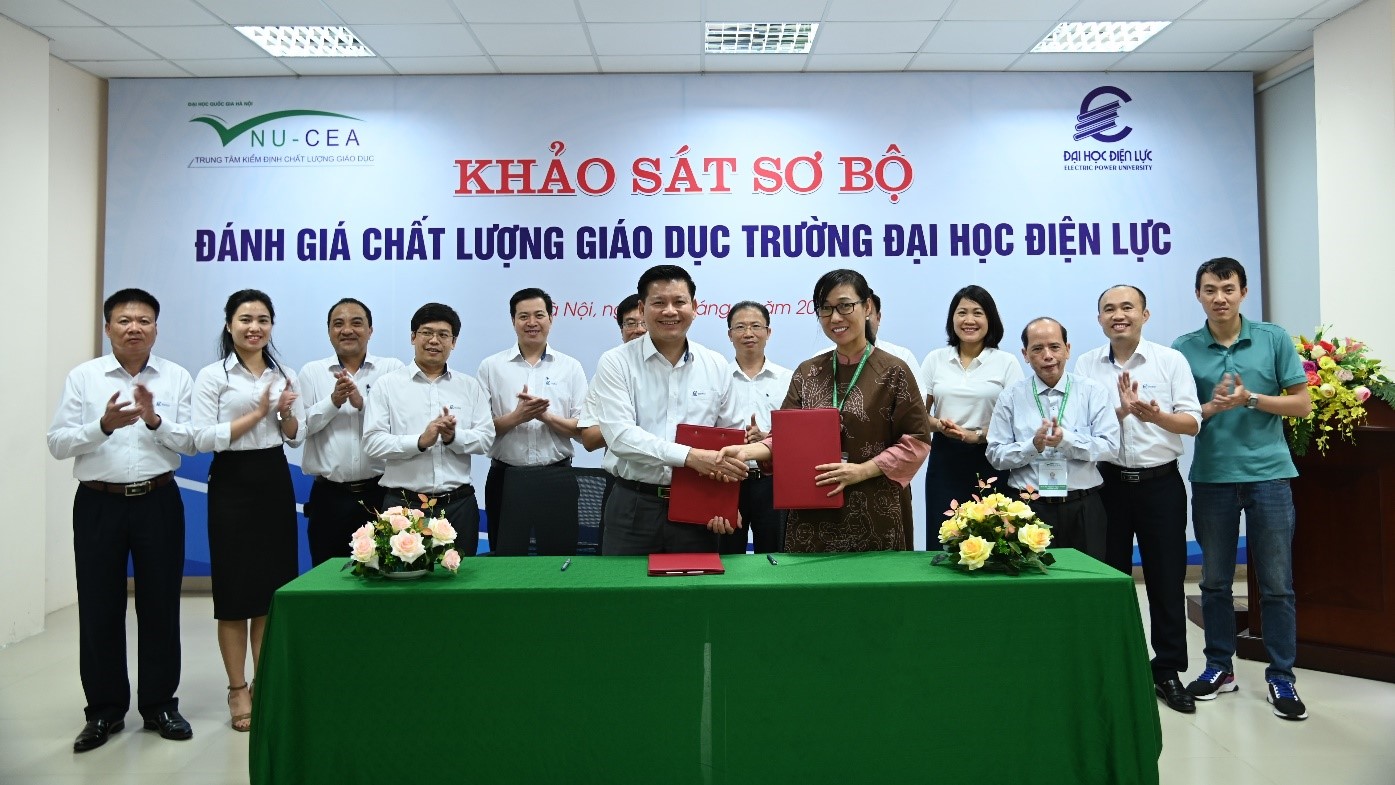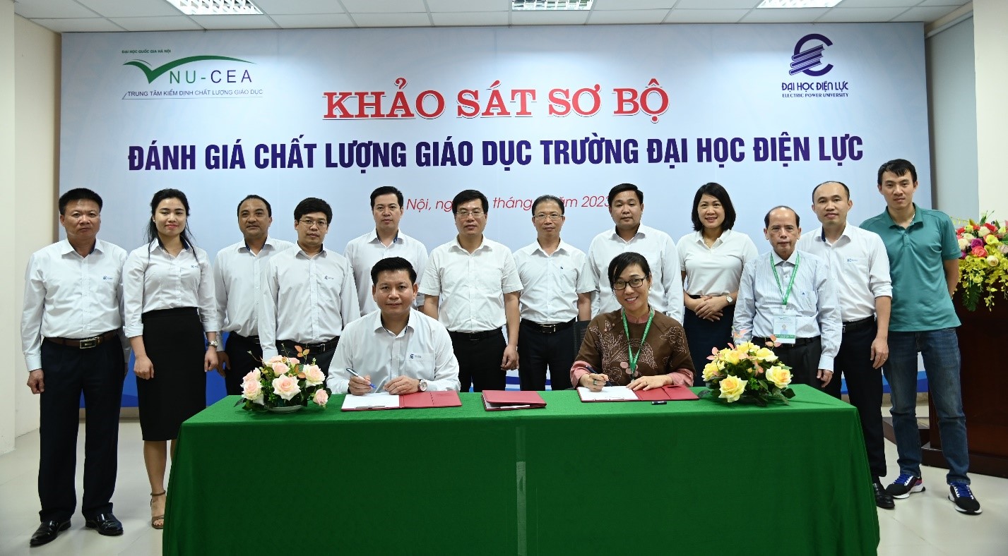 Cuối buổi làm việc, đại diện lãnh đạo Trung tâm KĐCLGD - ĐHQGHN và lãnh đạo Trường Đại học Điện lực đã ký Biên bản ghi nhớ sau khảo sát sơ bộ, khẳng