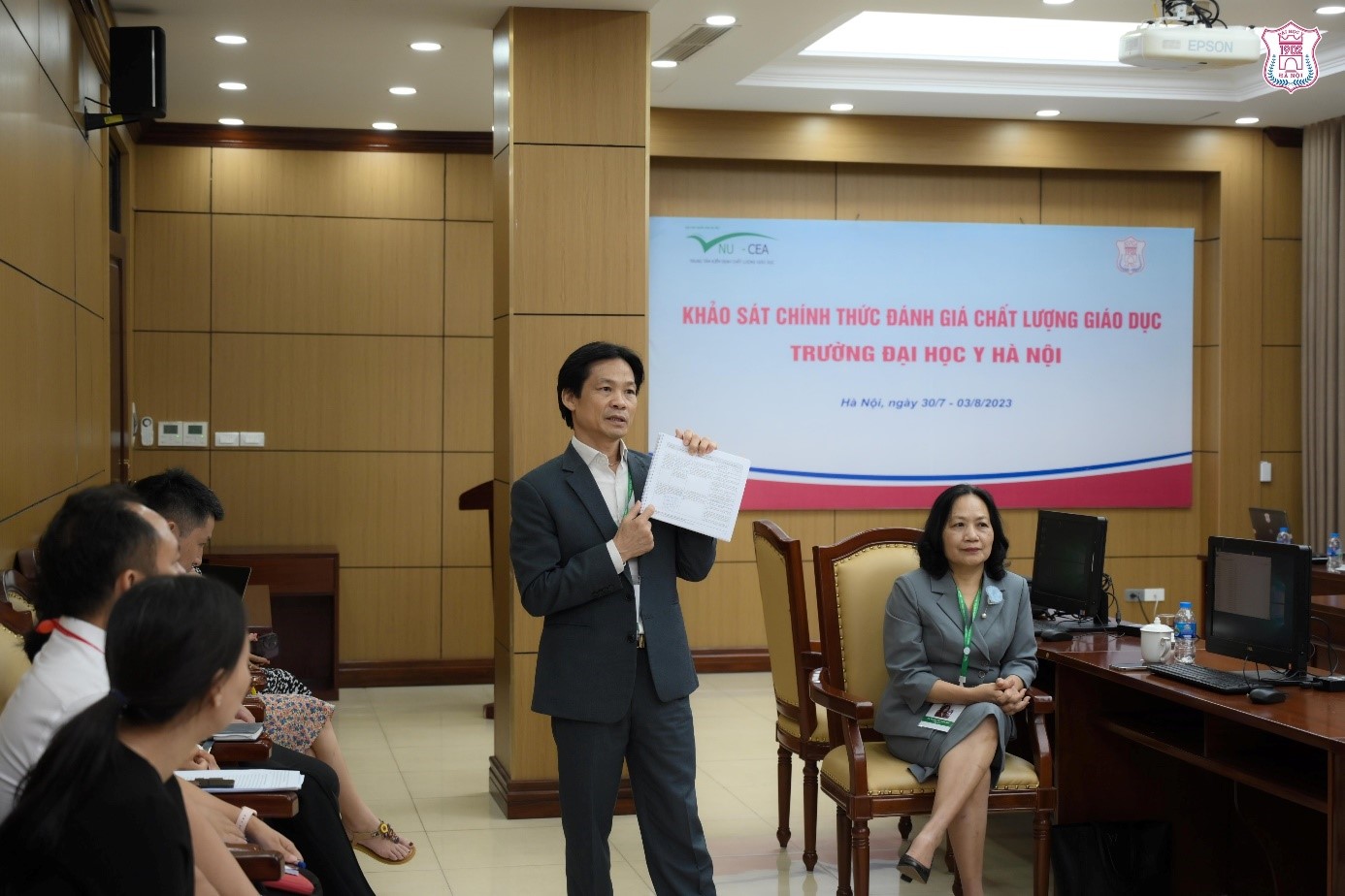 Giám đốc Trung tâm, đồng thời là thành viên Đoàn chuyên gia Đánh giá ngoài (ĐGN), GS.TS. Nguyễn Hữu Đức - Trưởng đoàn, TS. Hoàng Thị Xuân Hoa - Thư ký, ThS. Nguyễn Hòa Huy - Giám sát viên; Về phía Trường Đại học Y Hà Nội có: GS.TS. Nguyễn Hữu Tú