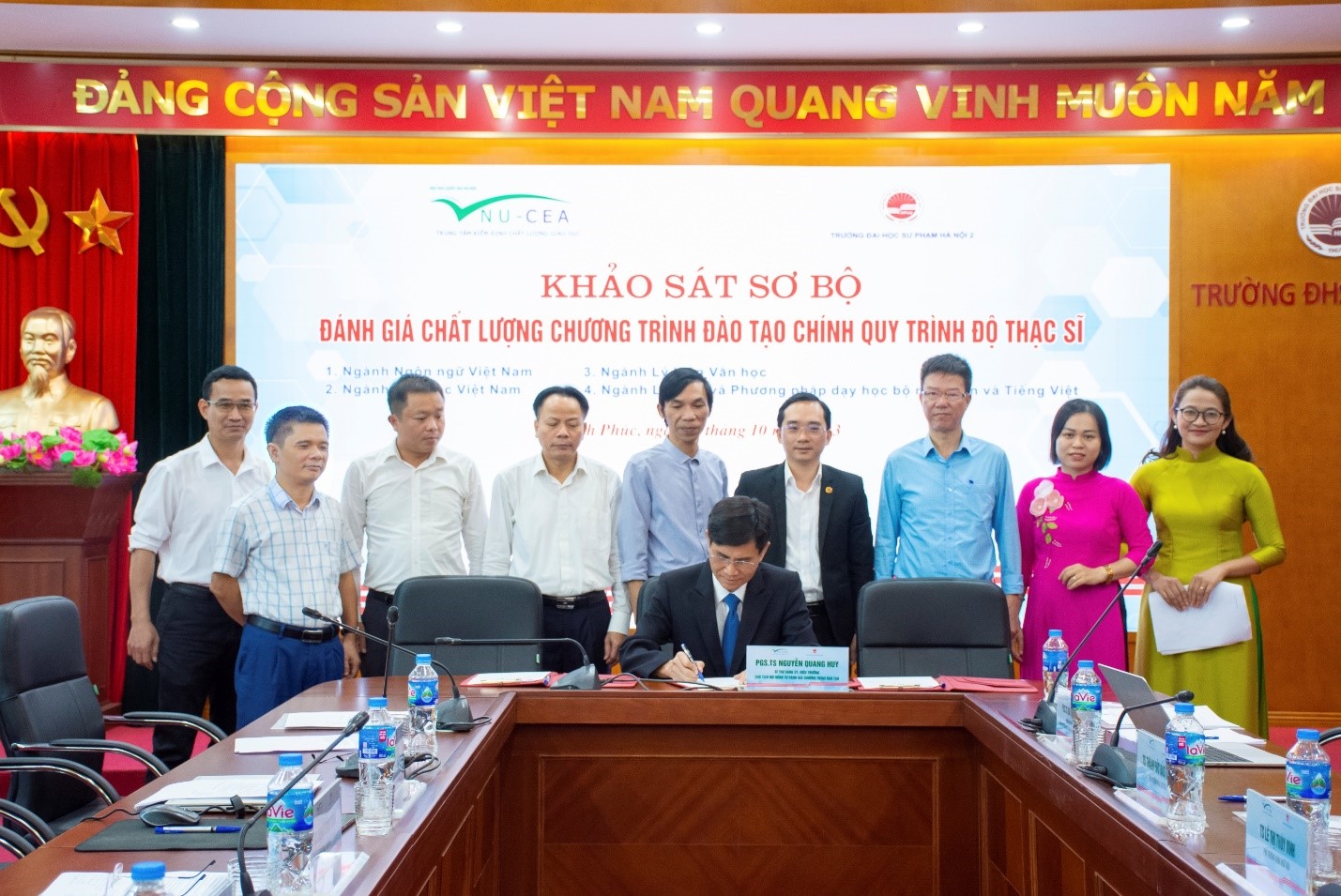 Cuối buổi làm việc, đại diện Lãnh đạo Trung tâm, Trưởng đoàn Chuyên gia ĐGN và đại diện Lãnh đạo Trường Đại học Sư phạm Hà Nội 2 đã ký Biên bản ghi nhớ sau khảo sát sơ bộ khẳng định sự chuẩn bị và sẵn