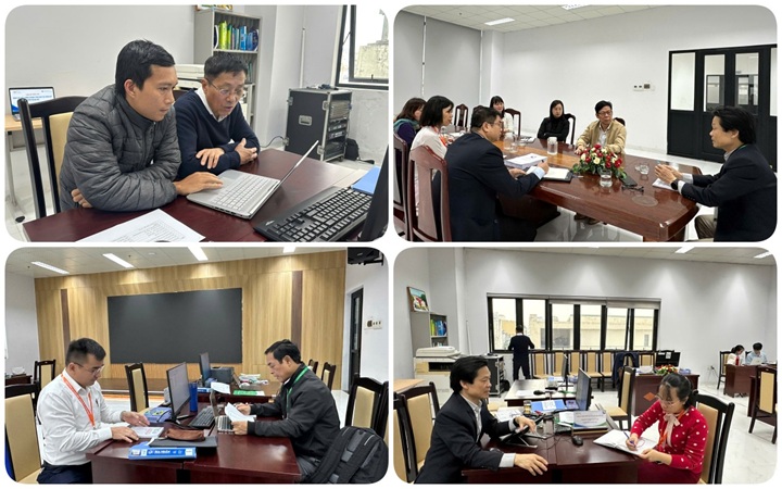 Đoàn nghiên cứu hồ sơ, minh chứng và làm việc với các cán bộ đầu mối