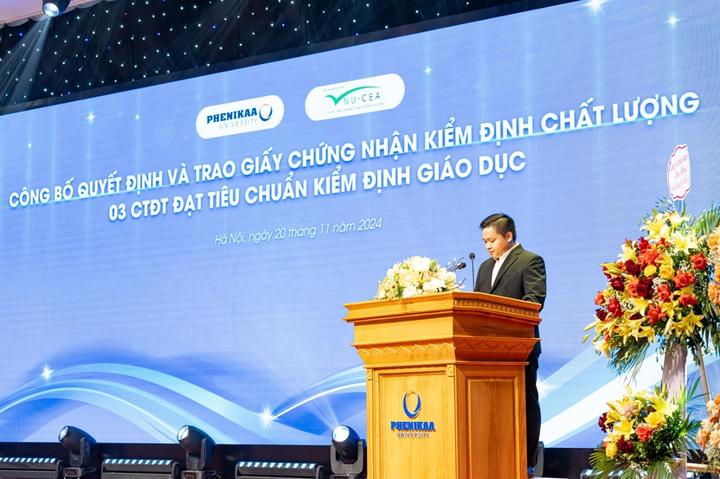 Ngày 20/11/2024, Trung tâm Kiểm định chất lượng giáo dục - Đại học Quốc gia Hà Nội (Trung tâm) phối hợp với Trường Đại học Phenikaa tổ chức công bố quyết định và trao giấy chứng nhận Kiểm định chất lượng cho 02 chương trình đào tạo