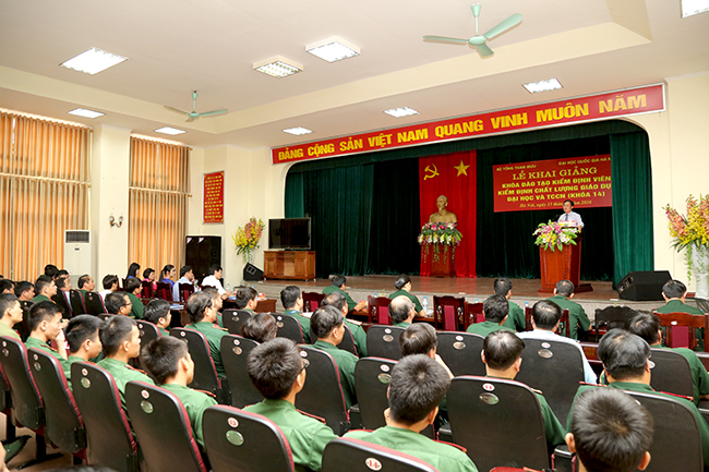 Phát biểu tại lễ khai giảng, Phó Giám đốc ĐHQGHN Nguyễn Hữu Đức đã chúc mừng các học viên tham gia khóa đào tạo Kiểm định viên kiểm định chất lượng giáo dục đại học và trung cấp chuyên nghiệp thứ 2 dành cho các học viên đến từ các cơ sở giáo dục đào tạo của Bộ Quốc phòng.