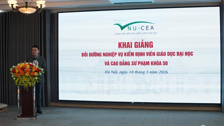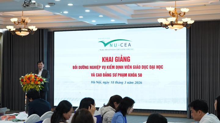 Ngày 18/3/2026, tại Hà Nội, Trung tâm Kiểm định chất lượng giáo dục - Đại học Quốc gia Hà Nội (Trung tâm KĐCLGD - ĐHQGHN) tổ chức khai giảng Khóa Bồi dưỡng nghiệp vụ kiểm định viên giáo dục đại học và cao đẳng sư phạm Khóa 50. Học viên tham gia khóa bồi dưỡng là lãnh đạo, cán bộ quản lý và giảng viên, chuyên viên đến từ các cơ quan quản lý giáo dục, các cơ sở giáo dục đại học trong cả nước. Khóa bồi dưỡng được thực hiện kết hợp trực tuyến (qua hệ thống LMS kết hợp với Zoom Meeting) và trực tiếp tại Hà Nội.