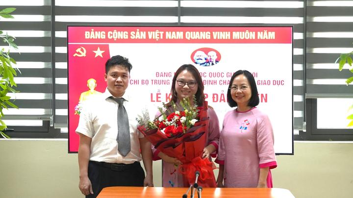 tặng hoa chúc mừng đảng viên mới Nguyễn Thị Hồng Hạnh