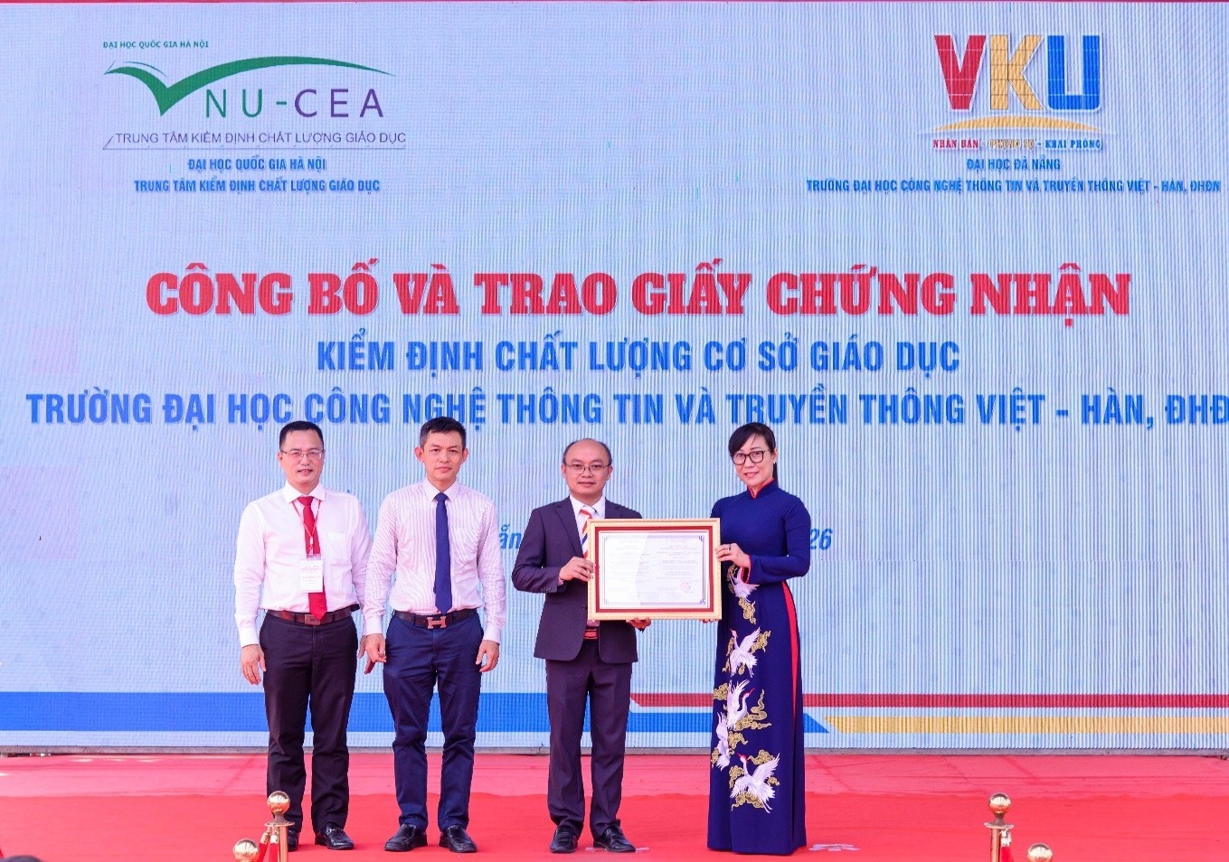 PGS.TS. Tạ Thị Thu Hiền, Giám đốc Trung tâm tham dự và trao Giấy chứng nhận cho Nhà trường