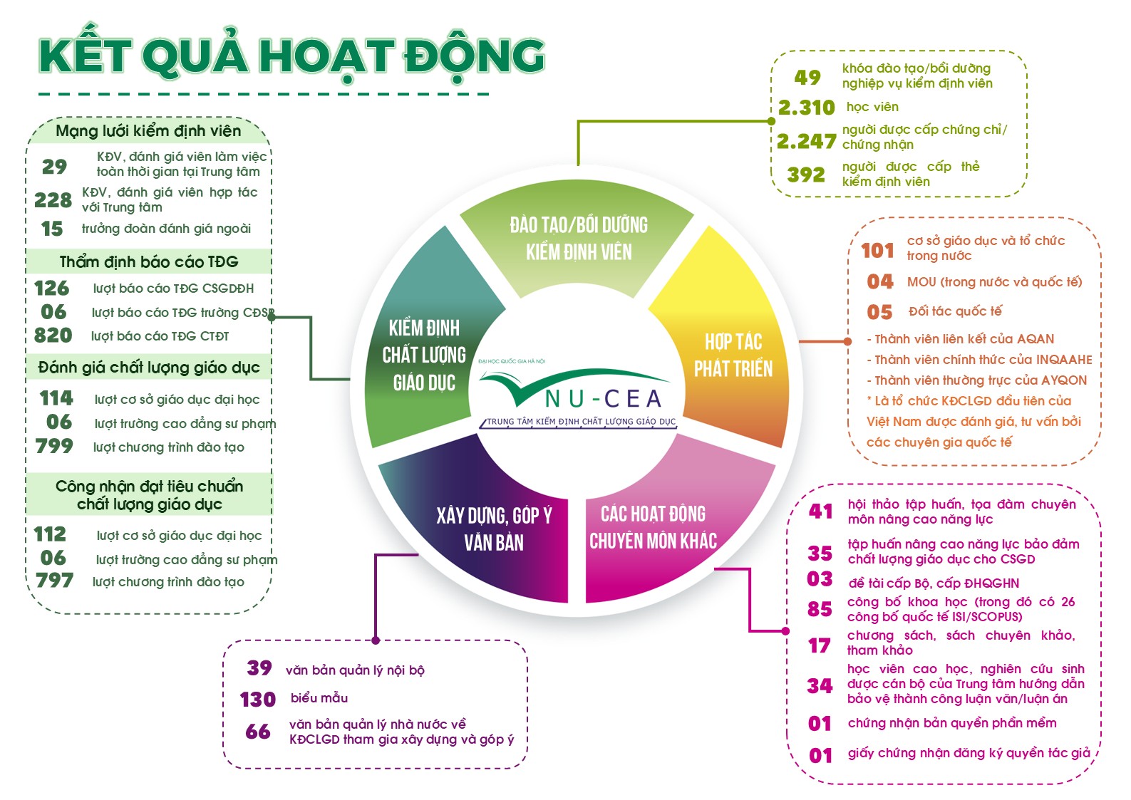 Sau khi được bổ nhiệm Giám đốc vào tháng 12/2013 và cấp phép hoạt động vào tháng 11/2014, Trung tâm đã triển khai chiến lược phát triển, kế hoạch trung hạn và hằng năm, góp phần quan trọng vào việc phát triển hệ thống kiểm định chất lượng giáo dục và xây dựng văn hóa chất lượng trong các cơ sở giáo dục đại học và cao đẳng tại Việt Nam.