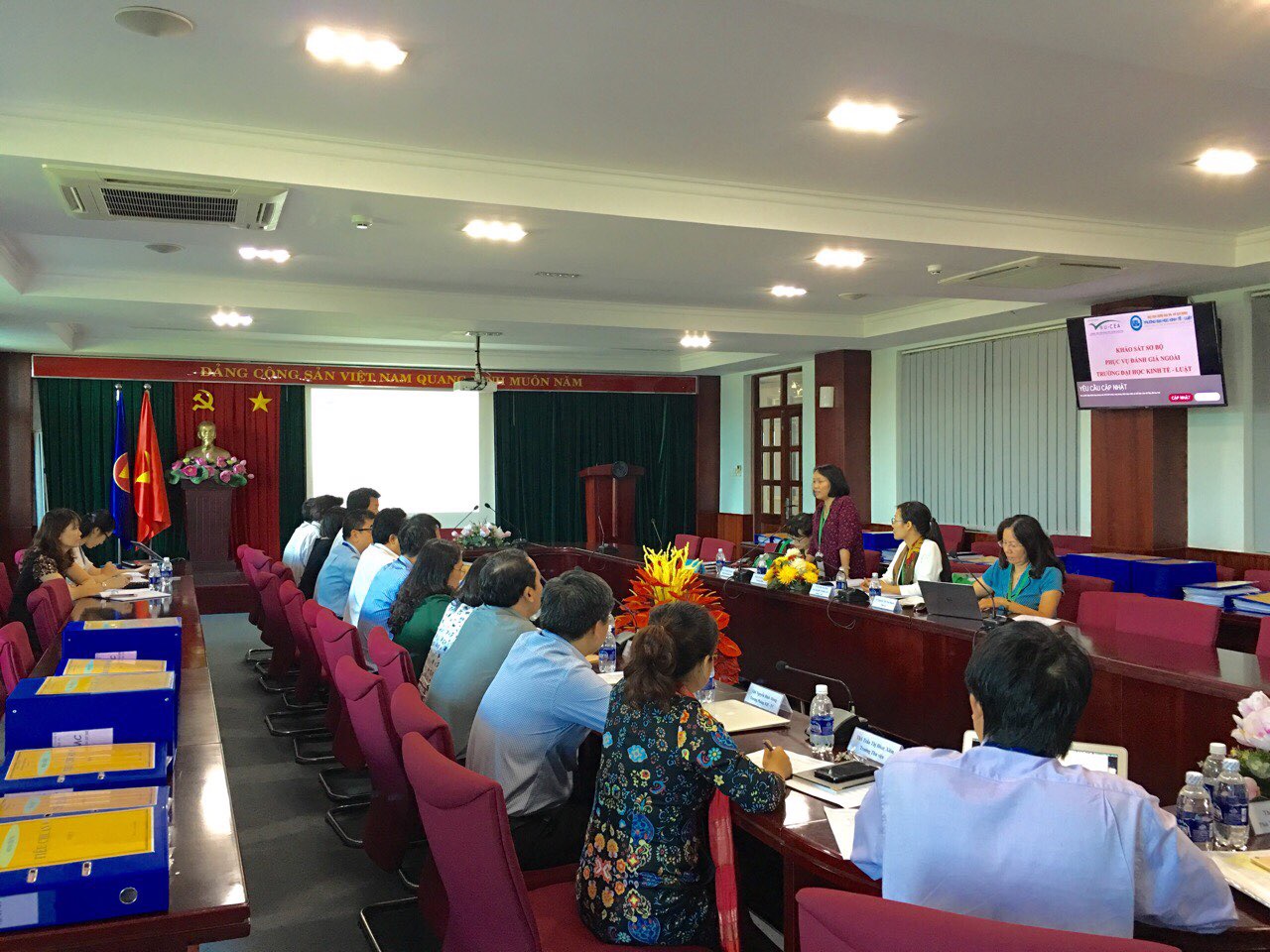 Đoàn chuyên gia đánh giá ngoài khảo sát sơ bộ tại Trường Đại học Kinh tế - Luật, Đại học Quốc gia Thành phố Hồ Chí Minh