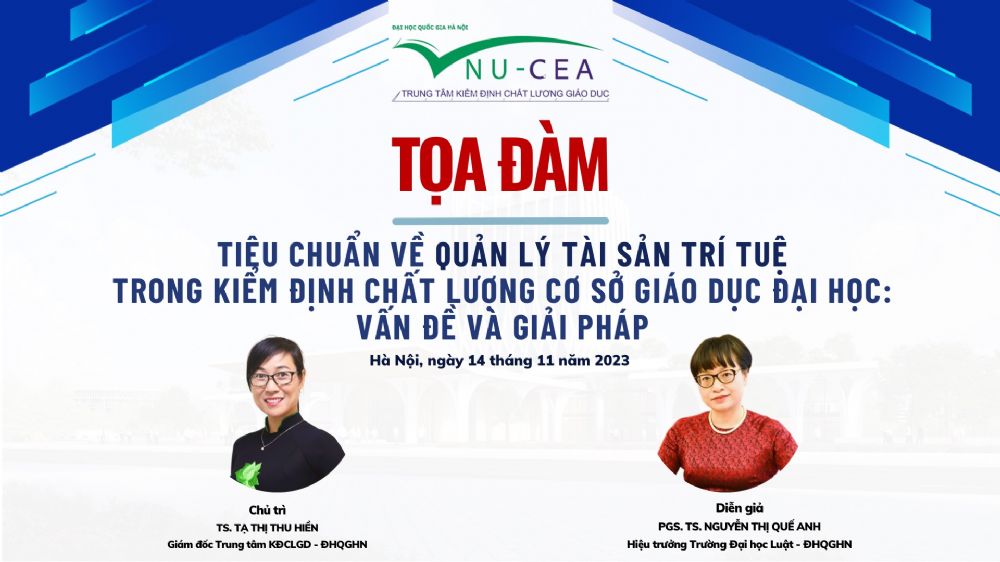 Thông báo về Tọa đàm kỷ niệm 20-11 "Tiêu chuẩn về quản lý tài sản trí tuệ trong kiểm định chất lượng cơ sở giáo dục đại học: vấn đề và giải pháp"