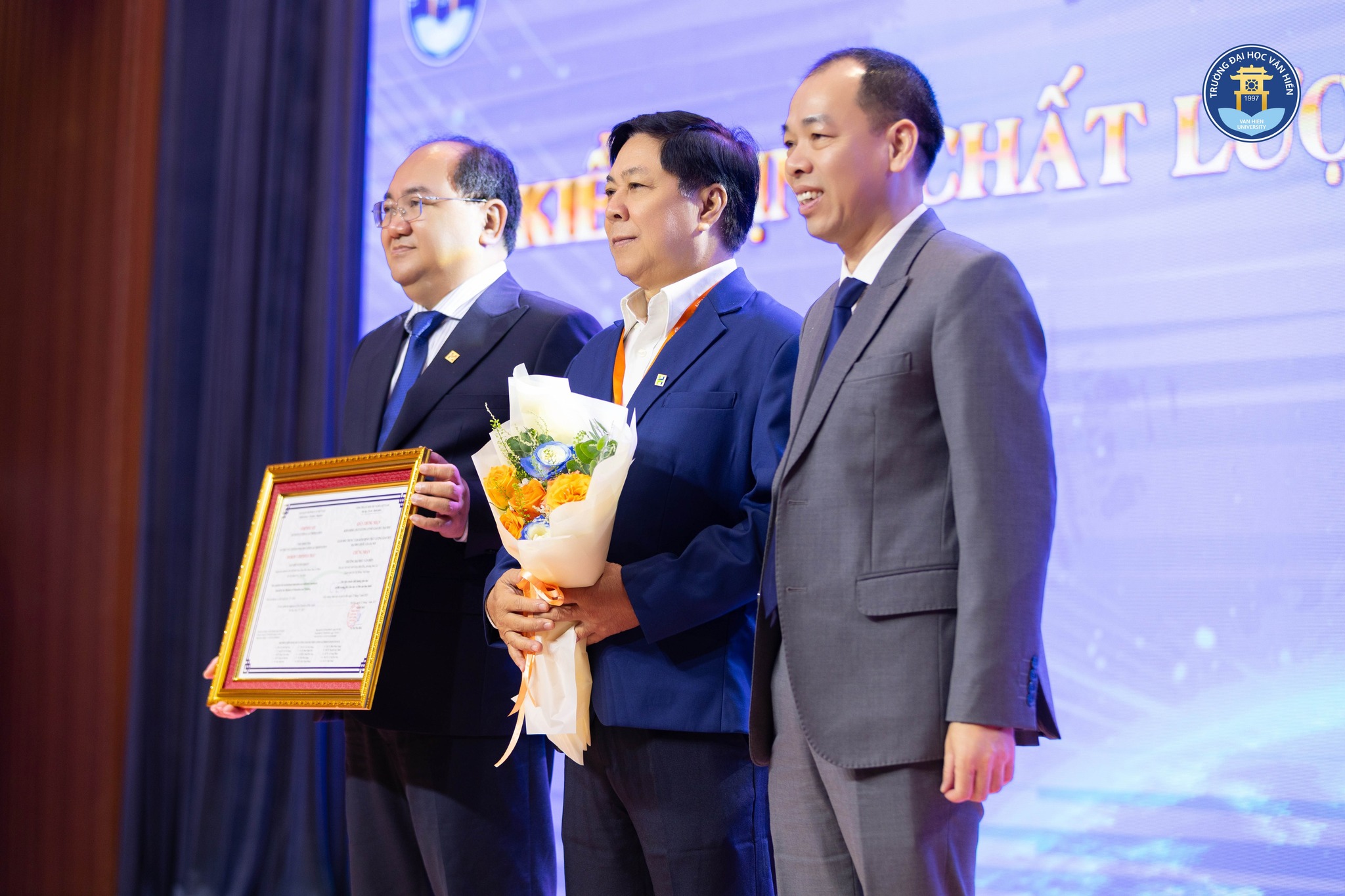 PGS.TS. Đinh Văn Dũng, Phó Chủ tịch Hội đồng quản lý Trung tâm trao giấy chứng nhận cho Nhà trường |